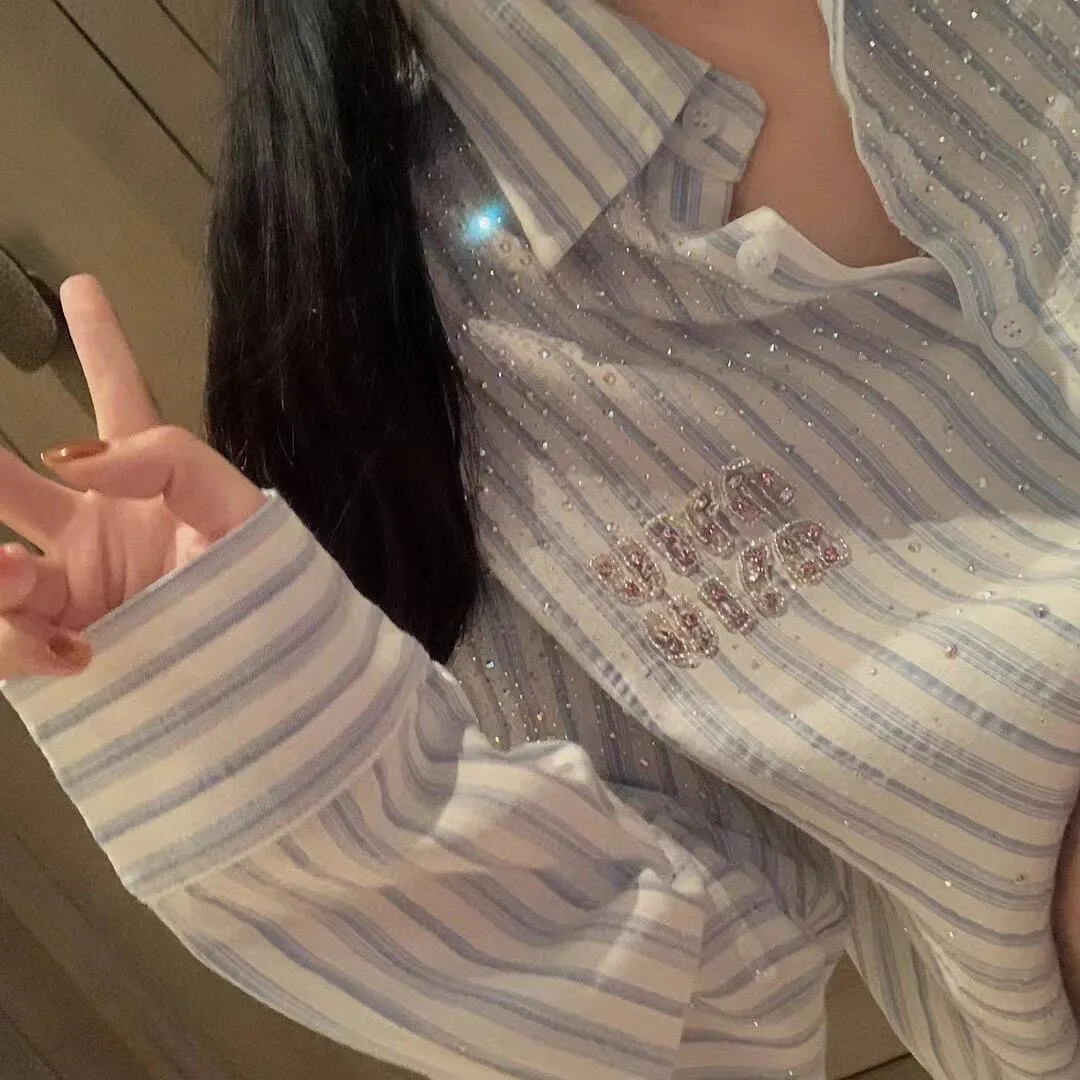 MIU MIU/Miu Miu [Gestreiftes Hemd mit Buchstabenperlen und Strasssteinen]