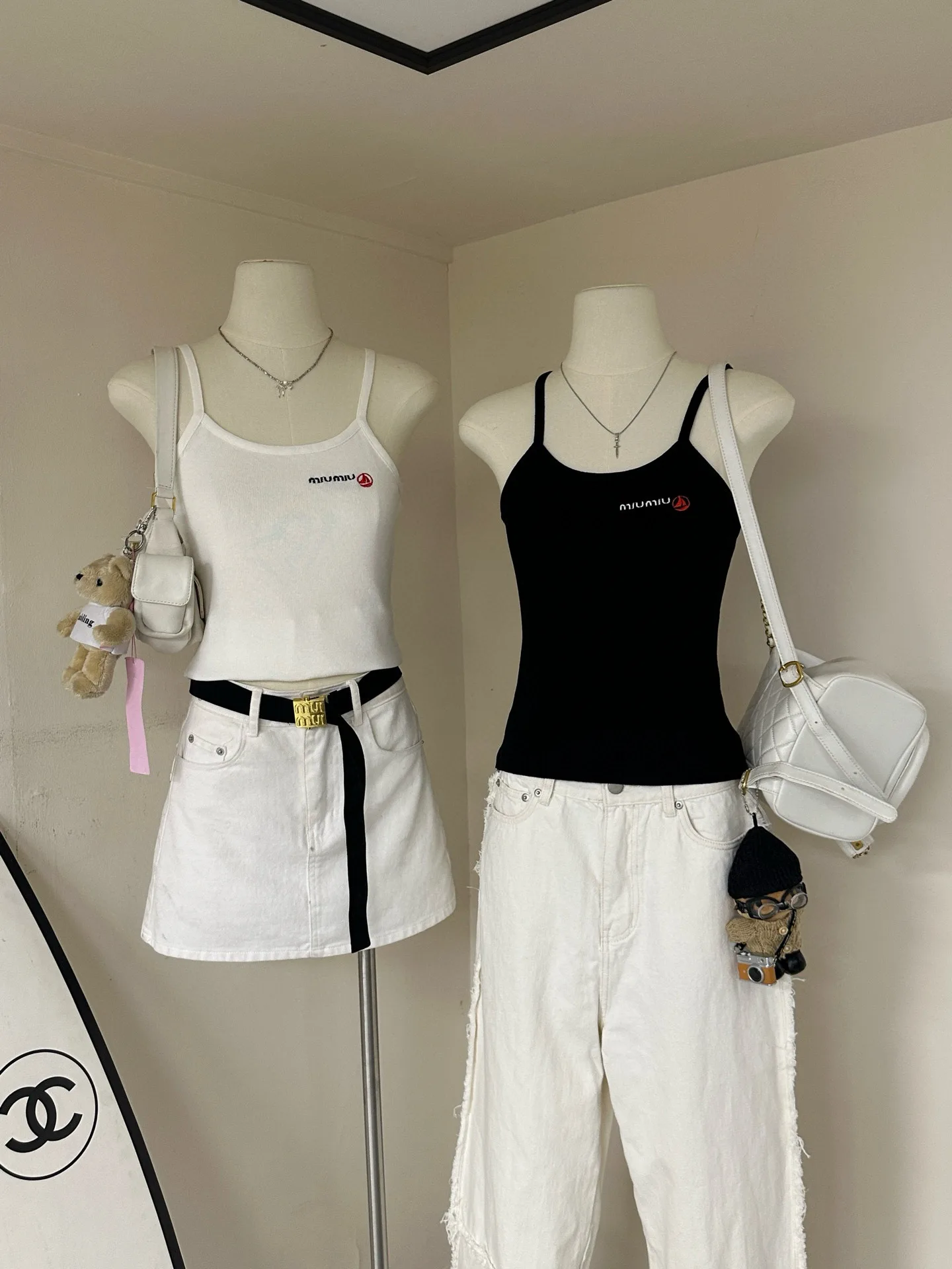 Miumiu Miu – Strick-Camisole mit kleinem Segelboot-Stickerei-Schriftzug