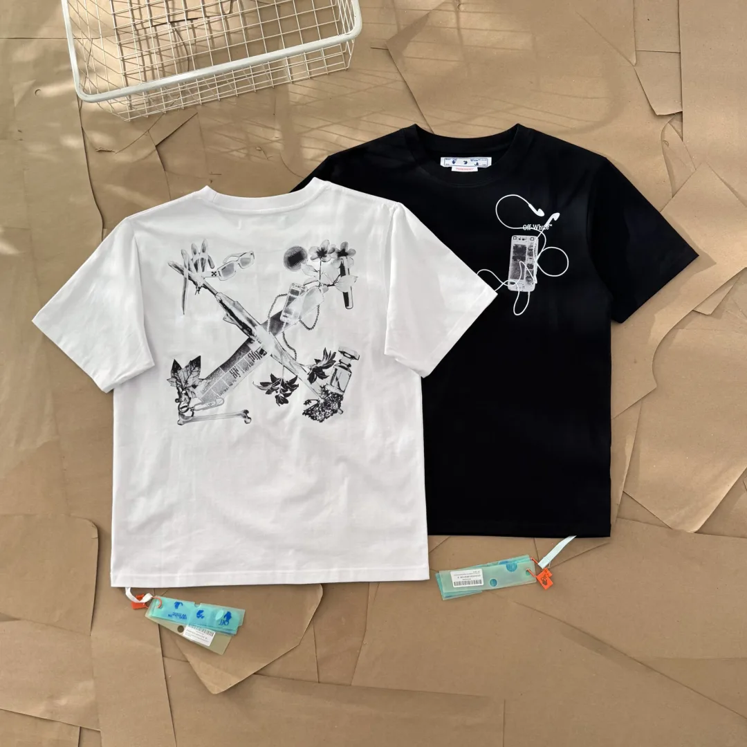 OW Sommer, neues cremefarbenes Kurzarm-T-Shirt mit mittelgroßem Brust- und Rückenaufdruck mit Totenkopf und Pfeil | Stoff: Individuell gewebter, reiner Baumwoll-Doppelgarn-Greigestoff, zweimal gewaschen und vorgeschrumpft (vorgeschrumpft, um weiteres Einlaufen und Verformen zu verhindern). Muster: Klassische OS-Passform. Breite, überschnittene Schultern, leicht konturierter Saum mit Schlitzen und Rippung. Druck: Rückseite bedruckt mit importiertem digitalem Direkttintendruck auf einer importierten Ellipsenmaschine für reine Farben, gestochen scharfe Bilder und Hochtemperatur-Heißprägung zur Verstärkung! Vollständig maßgeschneiderte, originelle Accessoires! Strenge Qualität! Dieselbe Qualität wie an der Theke! Vergleichen Sie bedenkenlos mit Top-Versionen! Neu auf der offiziellen Website: SS-Kragenetikett, Waschetikett, Hängeetikett und Verpackungsbeutel werden alle gleichzeitig aktualisiert.