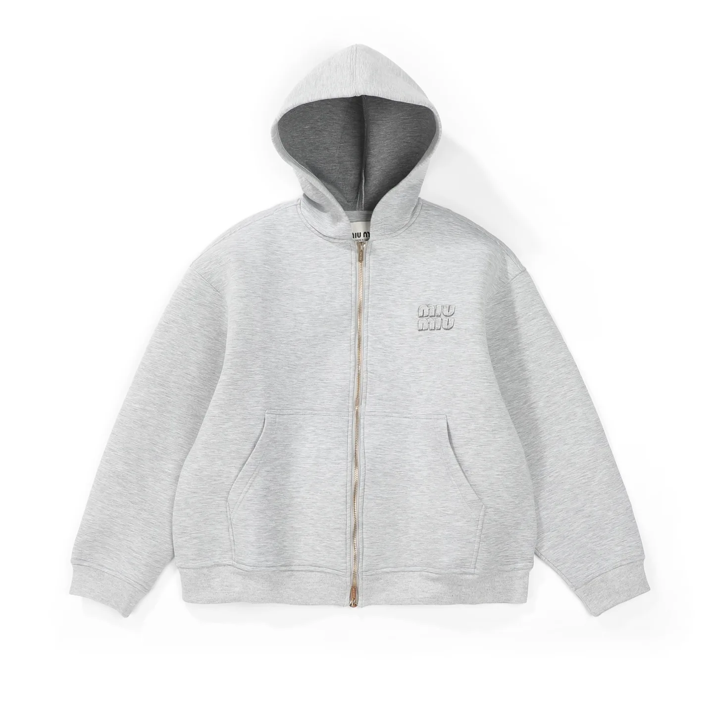 Miu Miu SS‘ meistverkauftes Kapuzensweatshirt aus Space-Baumwolle mit Logo-Applikation in passender Farbe.