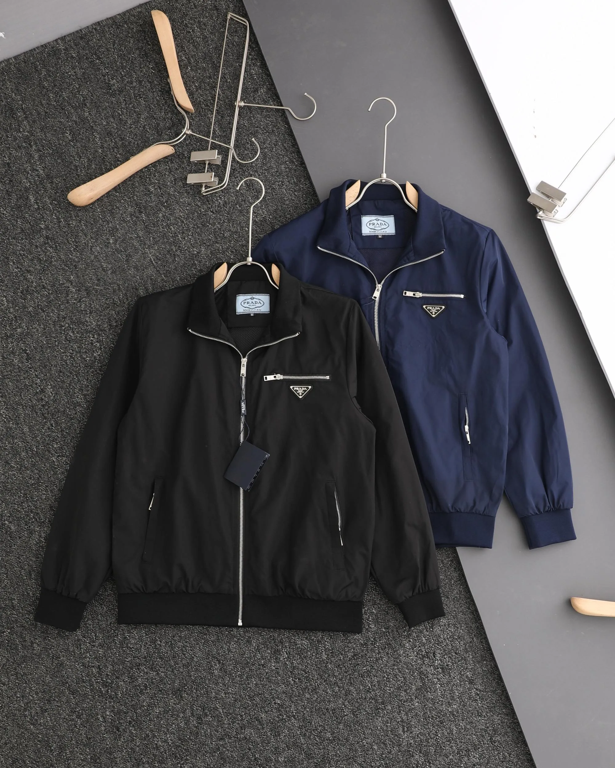 Pradas neue Arbeitsjacke mit Stehkragen für Frühjahr/Herbst, exklusiv auf der offiziellen Website.