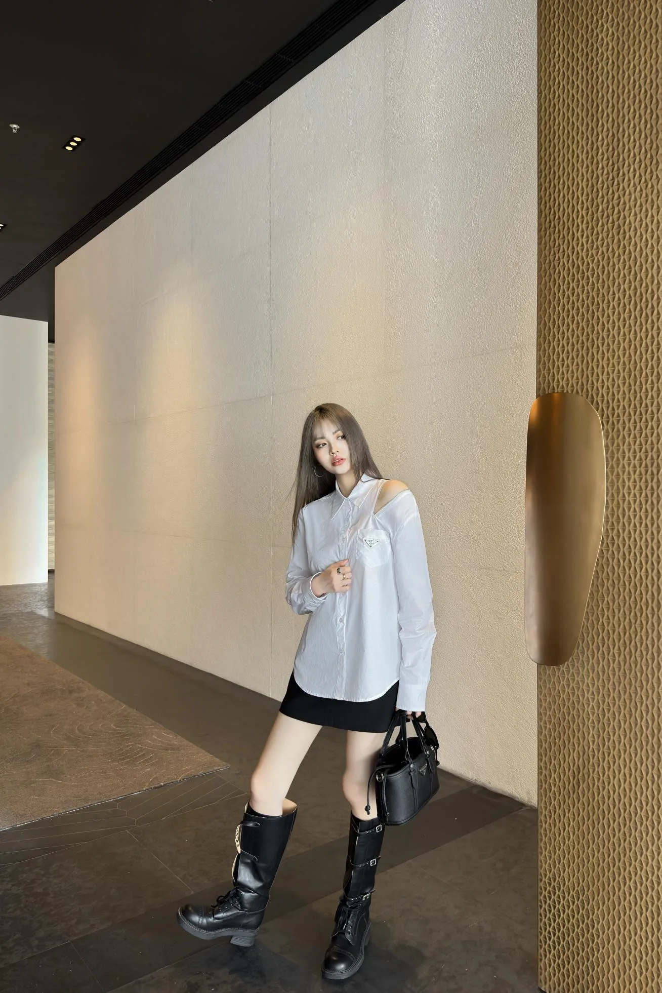 Neues Hemd (SS) / Klassische Dreieck-Logo-Stickerei / Schulterreißverschluss / Hochwertige Verarbeitung / Zwei Farben, drei Größen