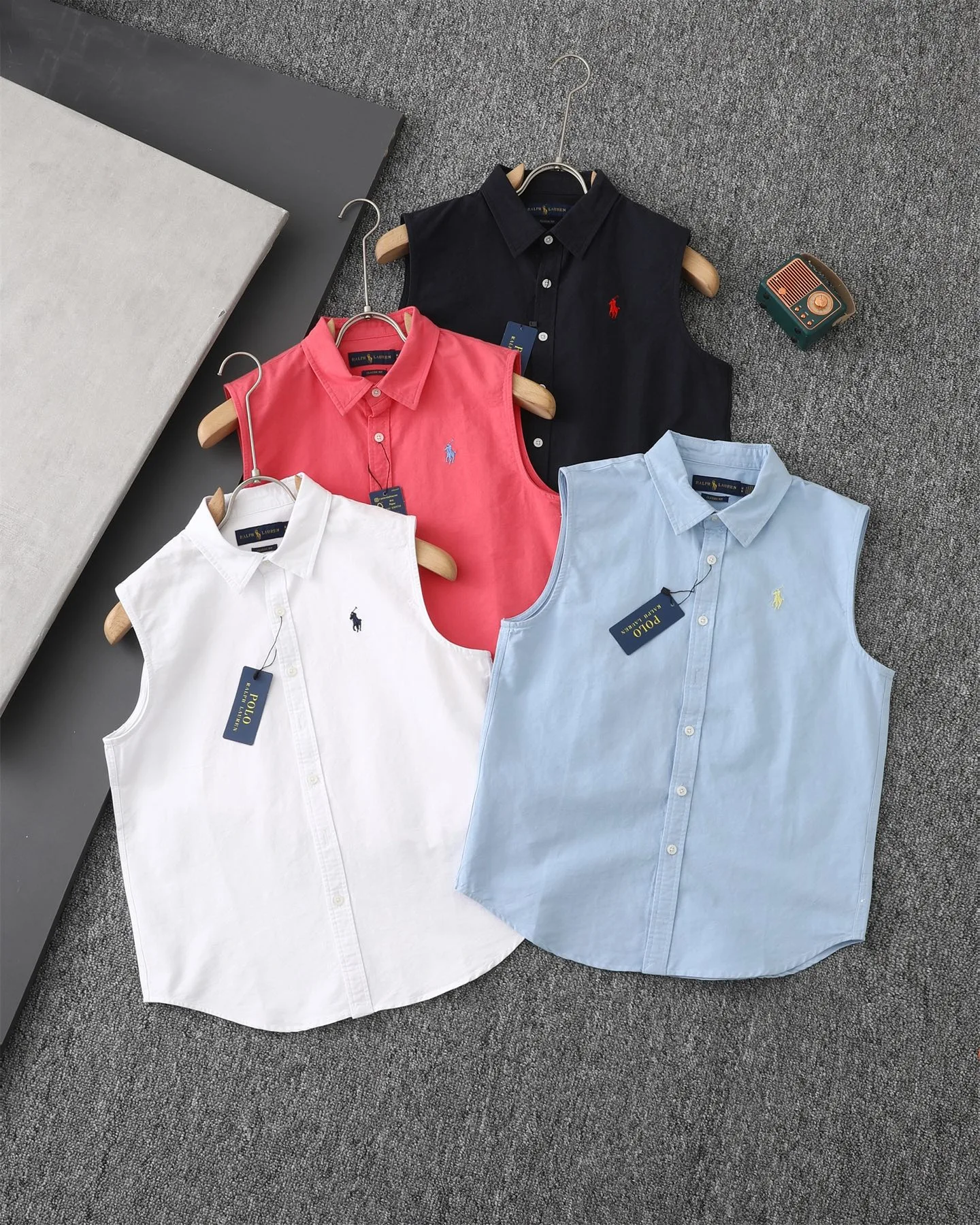 Ralph Lauren Sommer-Oxford-Hemd aus hochwertiger Baumwolle mit Pony-Logo, Unisex, lockeres, ärmelloses Hemd im Old-Fashion-Stil.