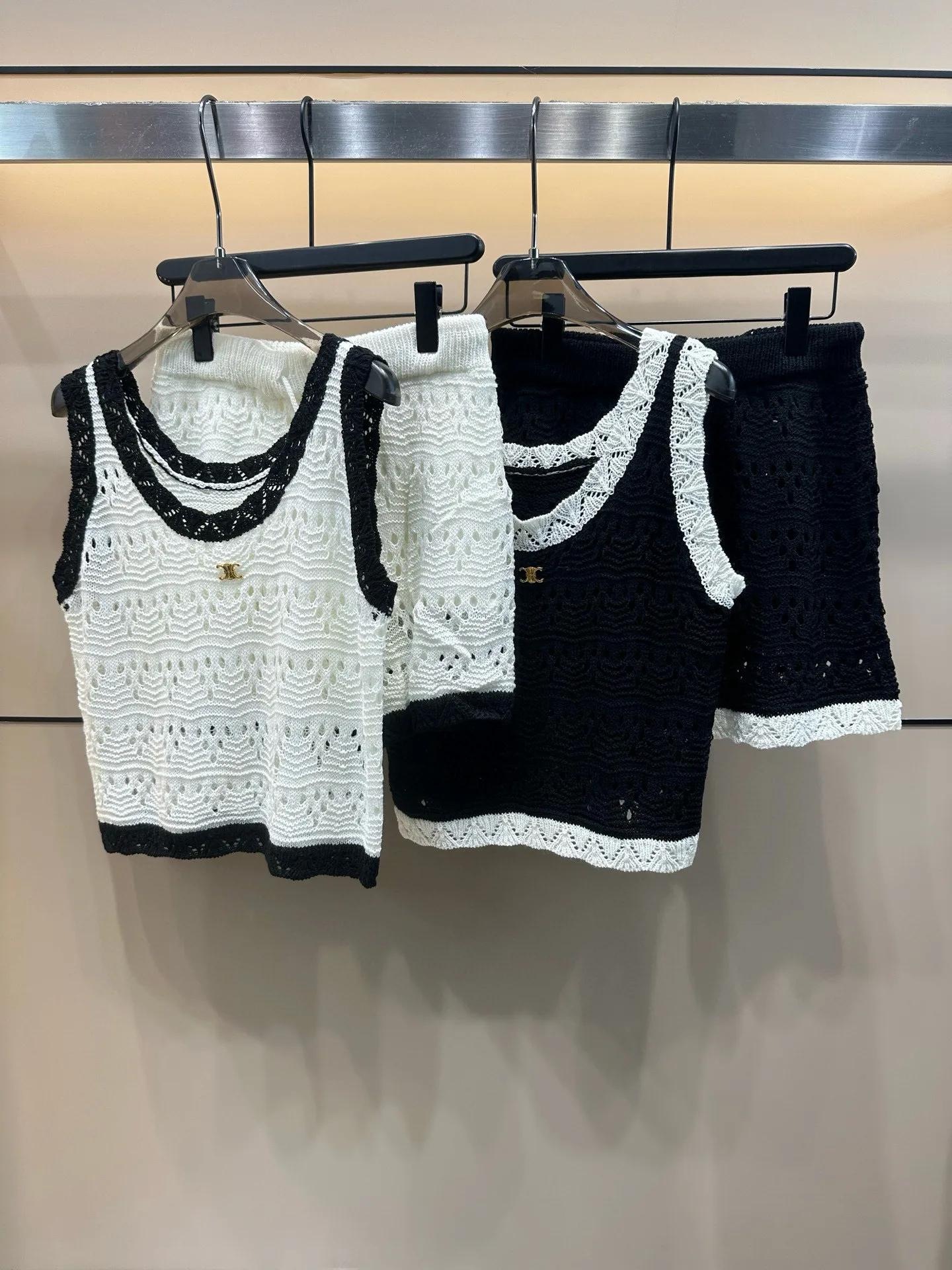 Celine Custom Metal Arc de Triomphe Hollow Colorblock-Strickset aus Weste und Shorts