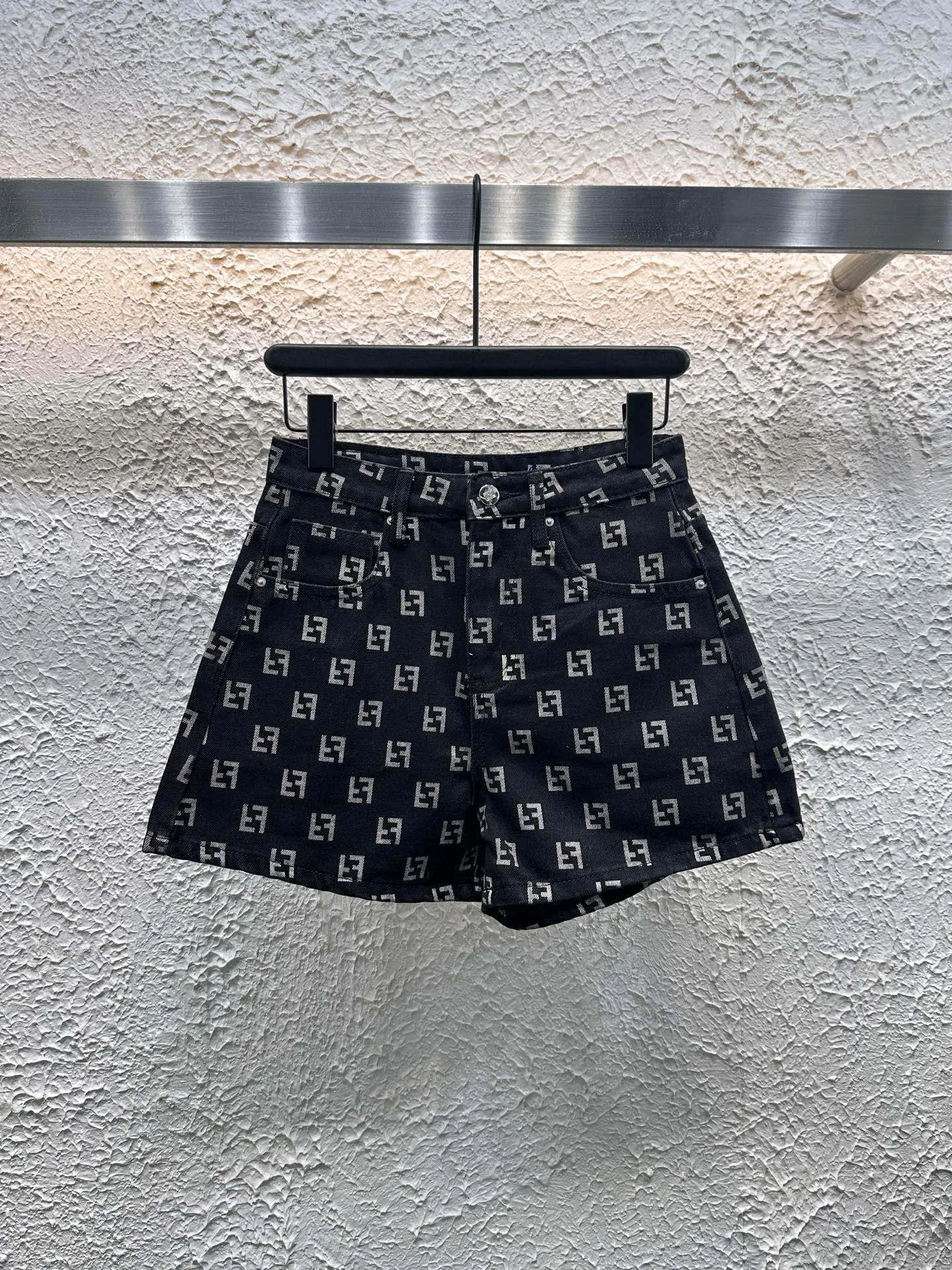 Luxus-Shorts von Fendi in schwarzem Denim, gewaschen, Luxus
