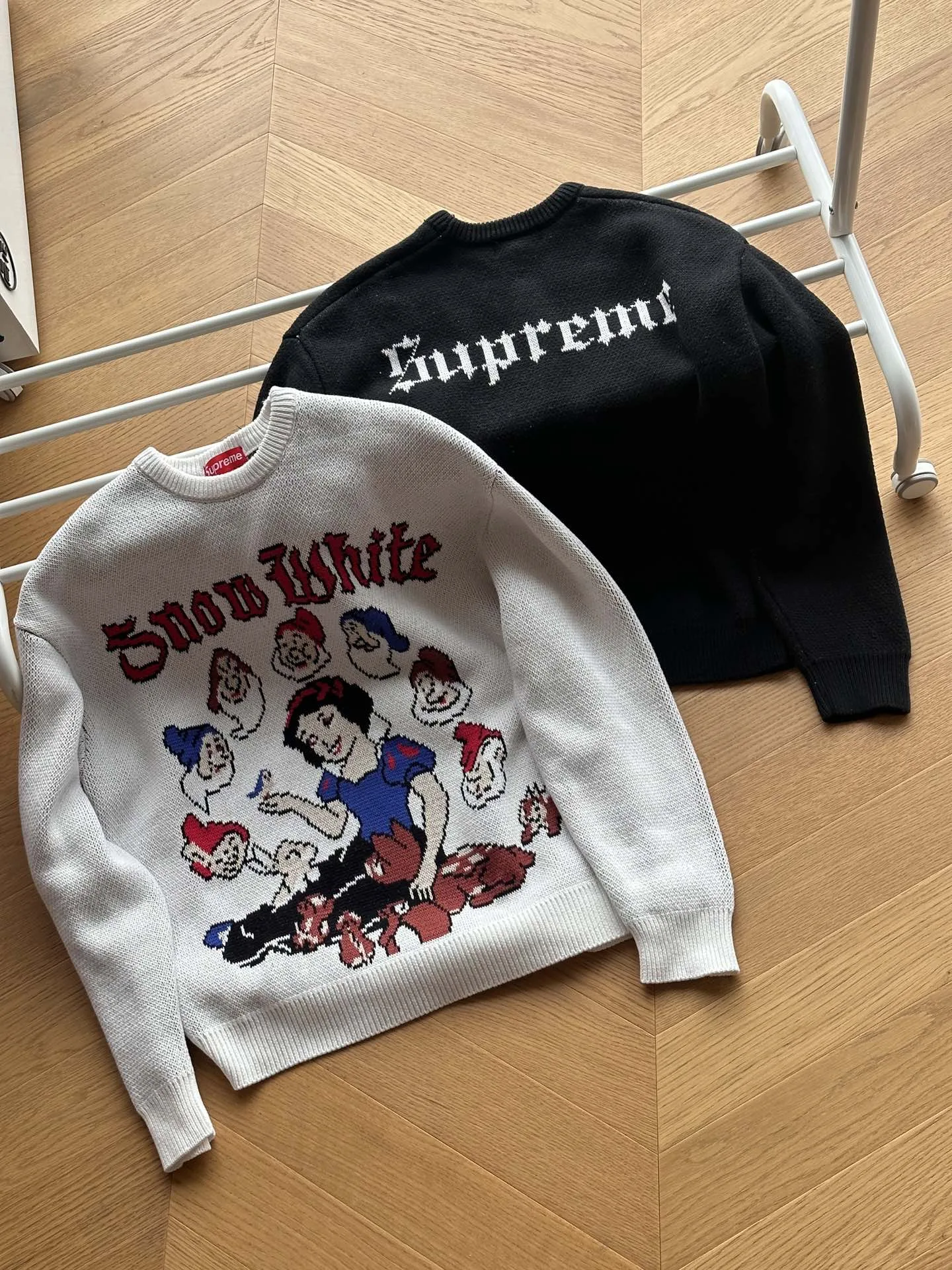 Erhältlich: Supe FW Schneewittchen-Pullover, Disney-Kollaboration, Schneewittchen-Jacquard-Rundhalspullover, Unisex.