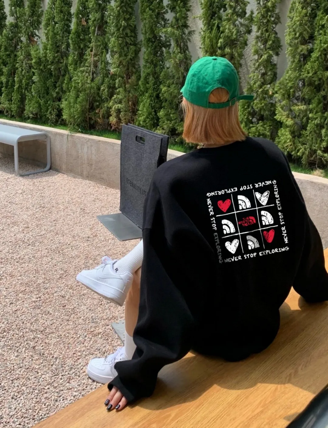 The North Face TNF Herbst/Winter: Neuer Co-Branding-Herz-Logo-Print auf Vorder- und Rückseite. Unisex-Sweatshirt mit Rundhalsausschnitt.