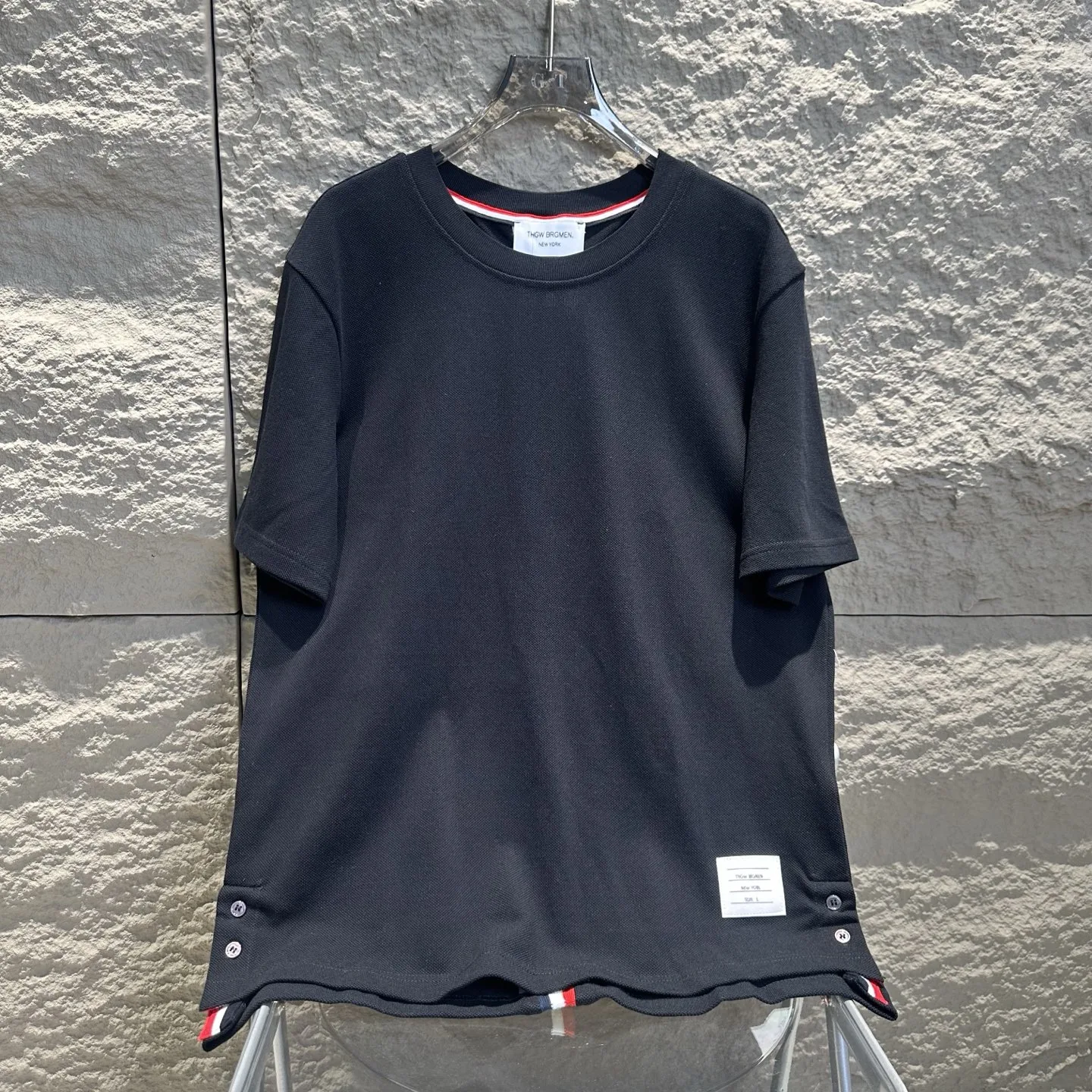 Thom Browne TB Classic. Die hochwertigste Unifarbe auf dem Markt. Dieser Rundhalsausschnitt passt perfekt zu jedem Outfit. Besonders empfehlenswert für seinen vielseitigen Style. THOMBROWNE: Ein klassisches, stylisches und lässiges Kurzarm-Top von der offiziellen Website! Authentisch und ein Bestseller! International exportiert! Jedes Detail verkörpert den TB-Spirit! Es sieht umwerfend aus und sorgt für einen stylischen Look, egal wie Sie es tragen! Hergestellt aus hochdichtem, ultradünnem Stretch-Baumwollgewebe mit genau der richtigen Dehnbarkeit und hervorragender Elastizität! Der Stoff ist maßgeschneidert und etwas ganz Besonderes! Er ist bequem, griffig, atmungsaktiv und pflegeleicht und behält auch nach dem Waschen seine Form! Jedes Detail ist exquisit! TB, bekannt für seinen designorientierten Ansatz, fertigt jedes Detail sorgfältig an! Es verkörpert perfekt die Essenz der Marke! Angenehm zu tragen! Stilvoll und luxuriös zugleich – mühelos stilvoll! Hochstrukturiert und mit fantastischer Passform! Das ist authentische TB-Qualität.