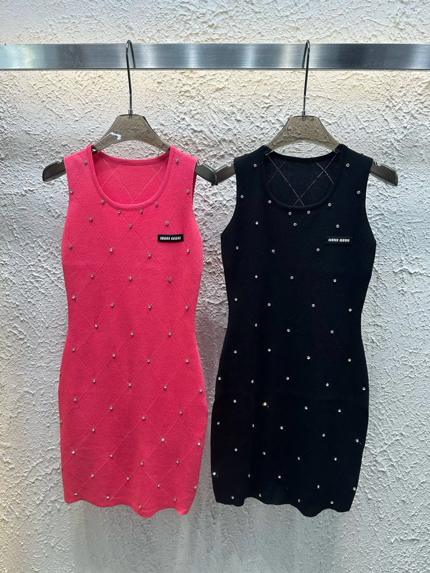 Miumiu Strickkleid mit kleinem Logo und Rautenbesatz