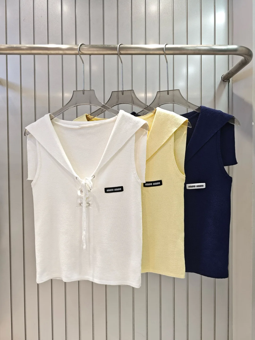 Miumiu Custom Strickweste im Marine-Stil mit kleinem Logo und Bändern