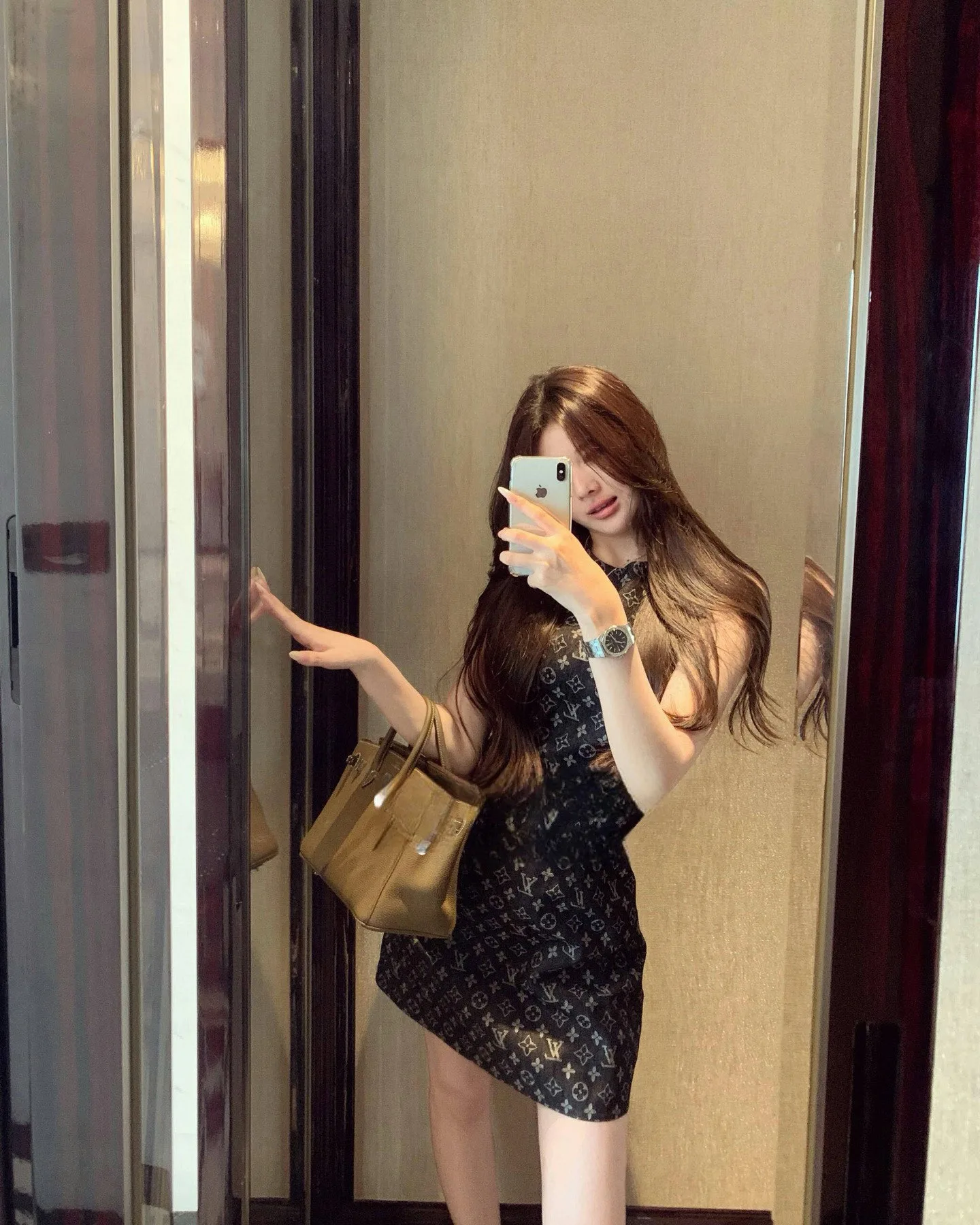 Louis Vuitton Maßgefertigtes Westekleid aus einfarbigem Jacquard-Jeansstoff mit Reißverschluss und vierblättrigem Kleeblatt