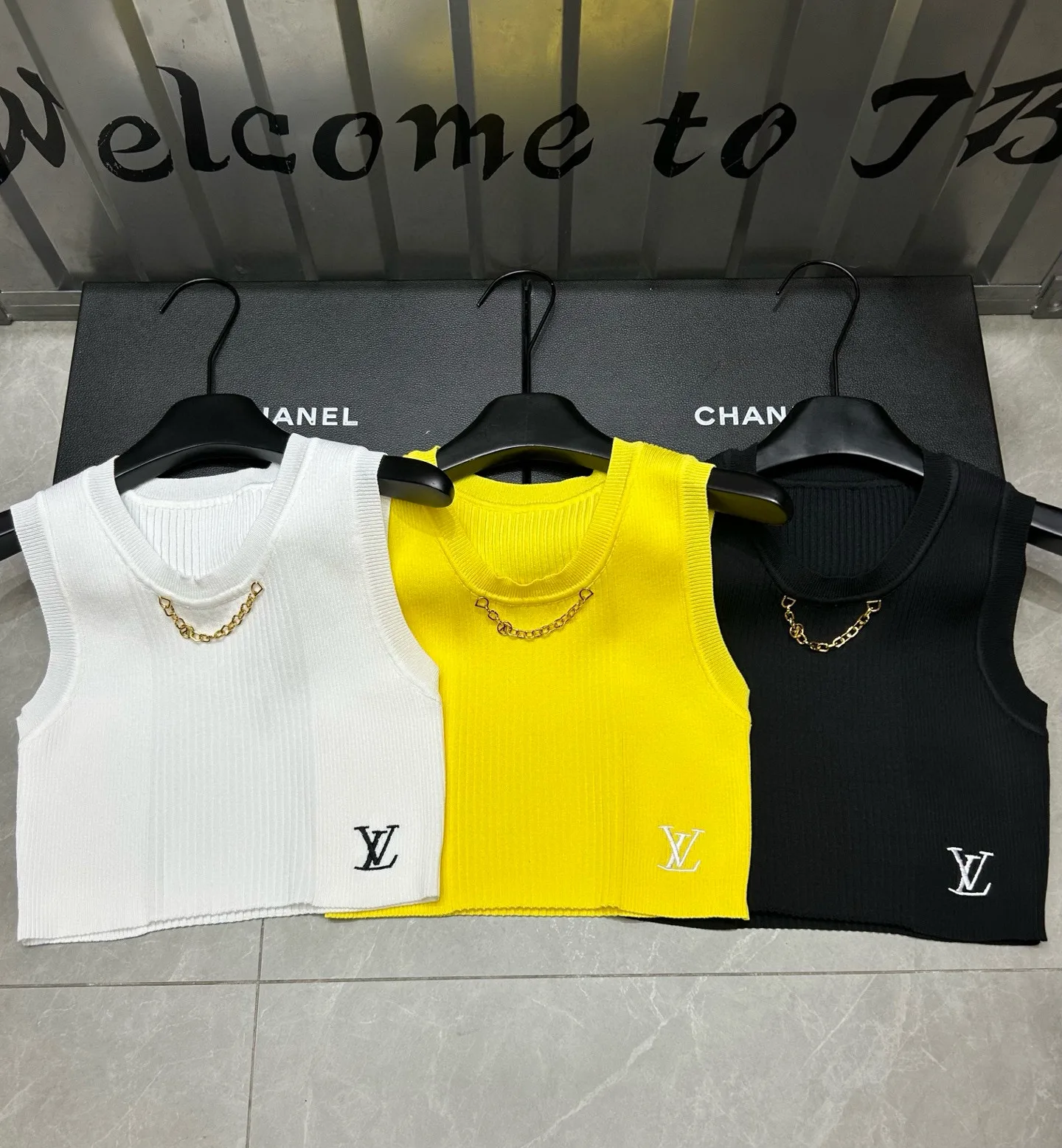 Louis Vuitton LV Esel-Schriftzug-Strickweste mit Kettenstickerei