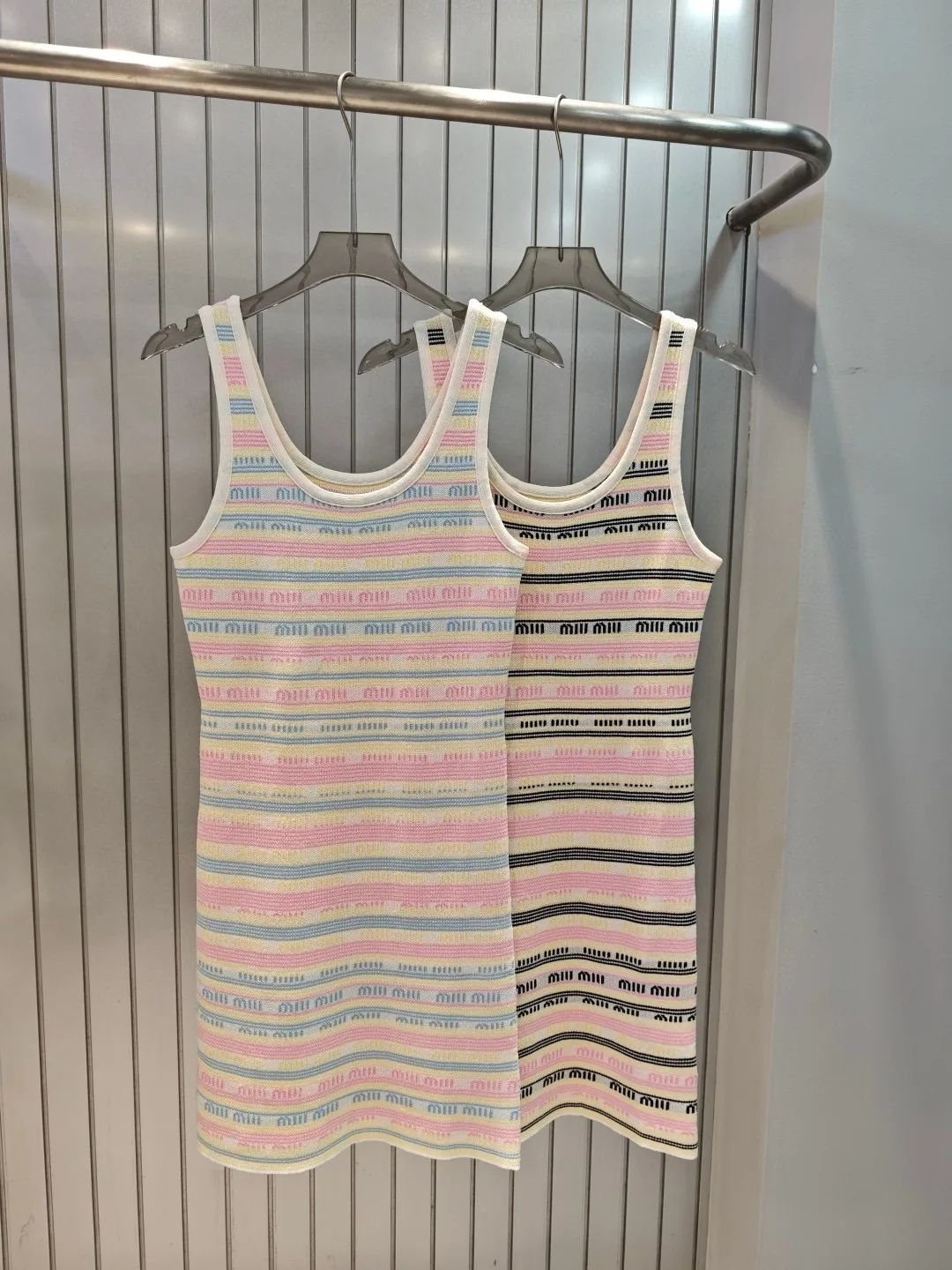 Miumiu Miu Miu Jacquard-Strickkleid mit bunten Streifen