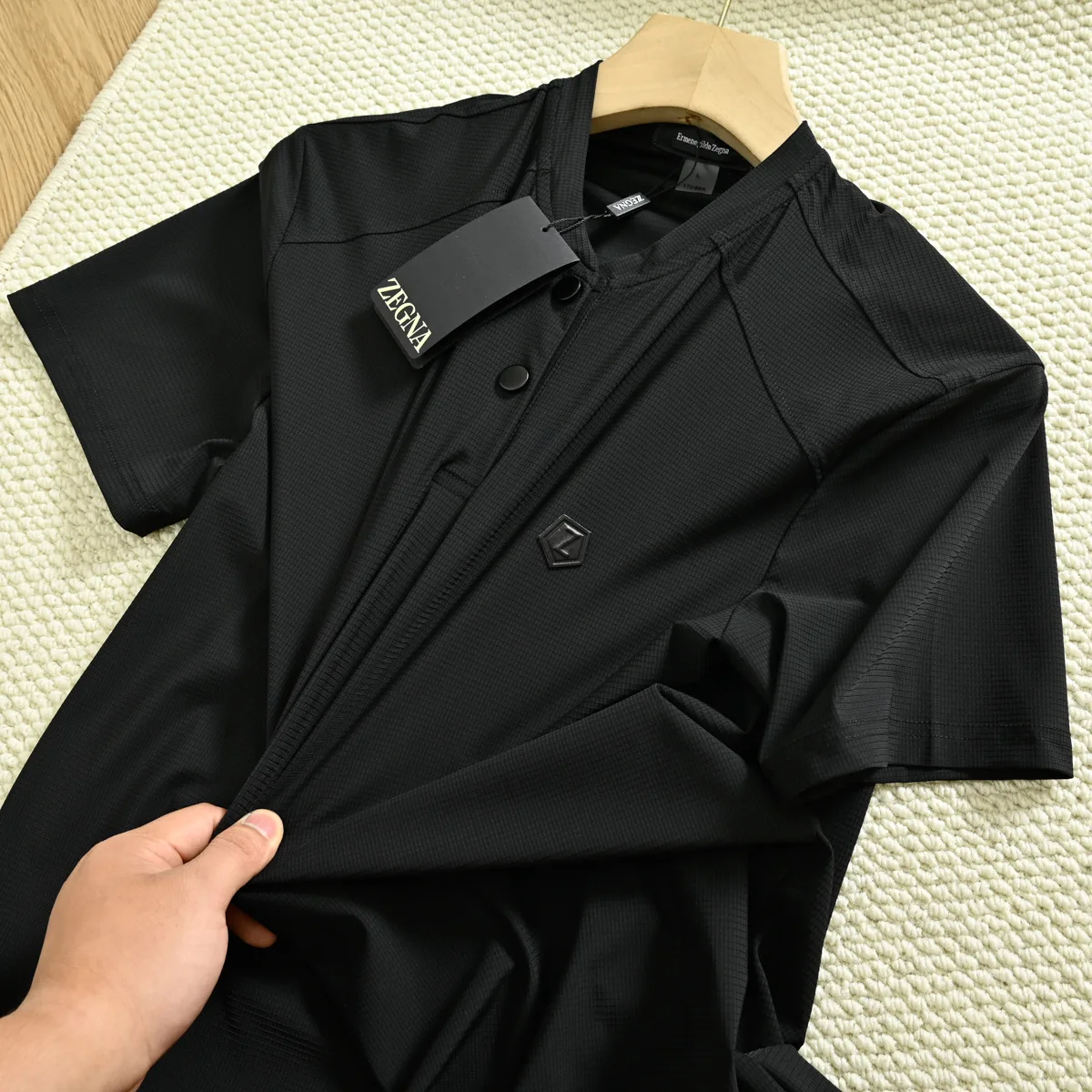 Zegna/Zegna Sommer Herren-Poloshirt mit Stehkragen, schnelltrocknender Ice Silk, lässig, Business, kurzärmlig