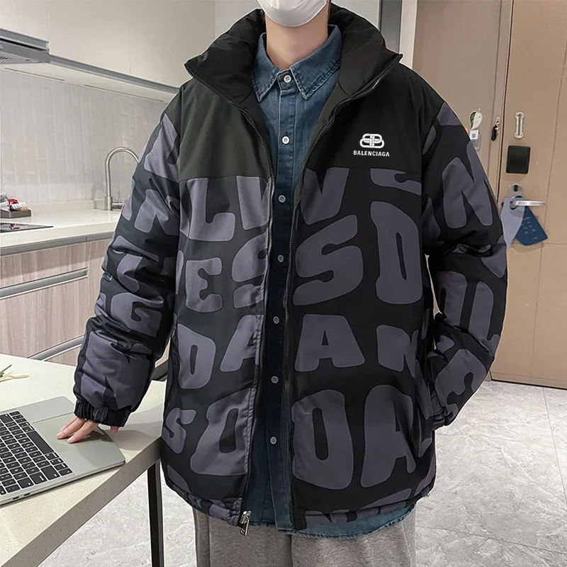 Laoyoutiaos neuer Balenciaga-Winter-Hit: Ein wendbarer Baumwollmantel mit Stehkragen und Allover-Schriftzug-Print. Dieser Taobao-Hit wird von vielen trendbewussten Menschen getragen und ist ein echter Straßenhit. Der Unisex-Style hat eine lockere Passform und lässt sich dank des Futters leicht kombinieren. Schlicht und vielseitig: Das handgesteckte Futter hält Sie diesen Winter modisch und warm.