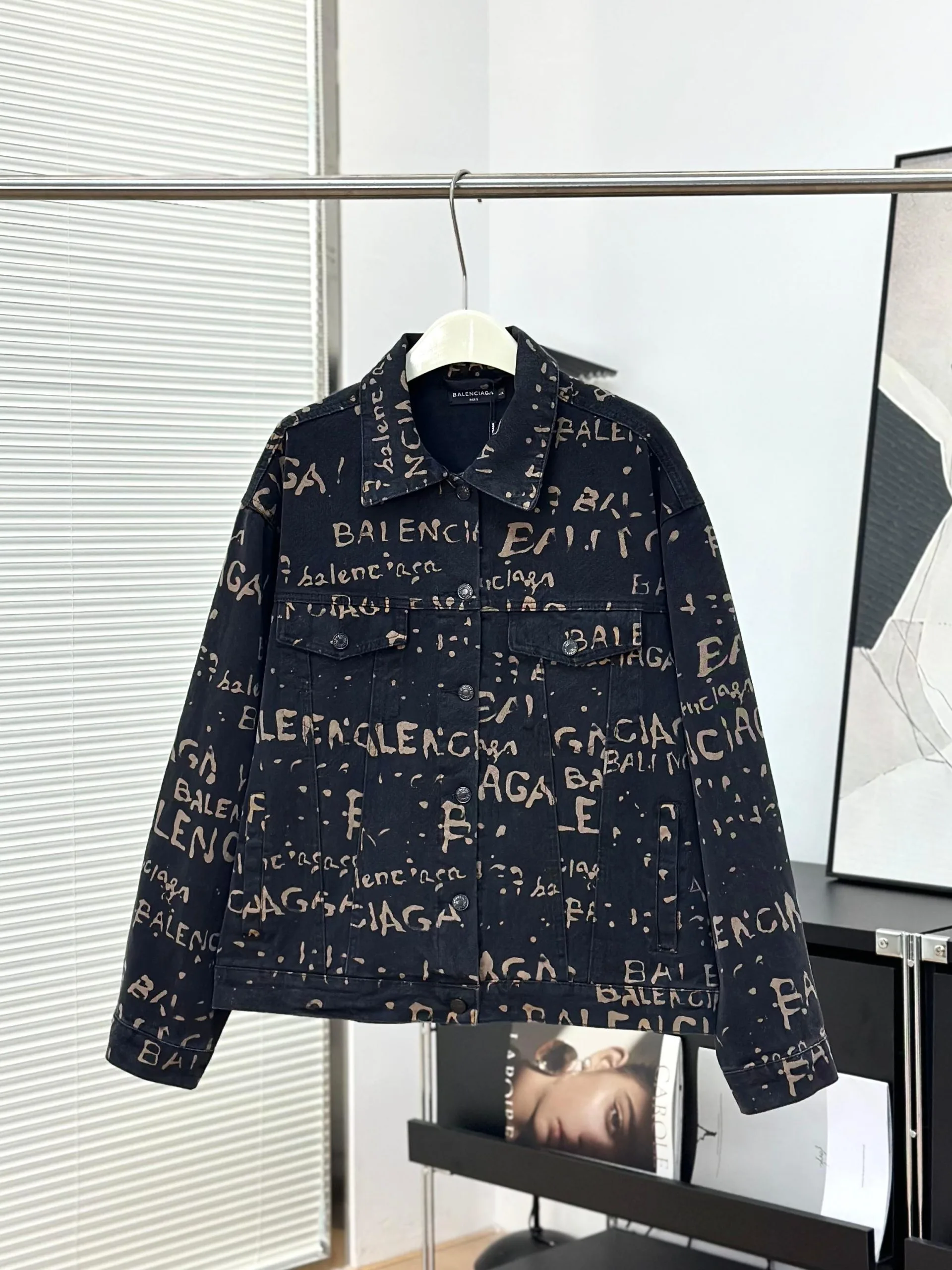 Balenciagas neue Jeansjacke mit verwaschenem Allover-Print im BLCG-Look.