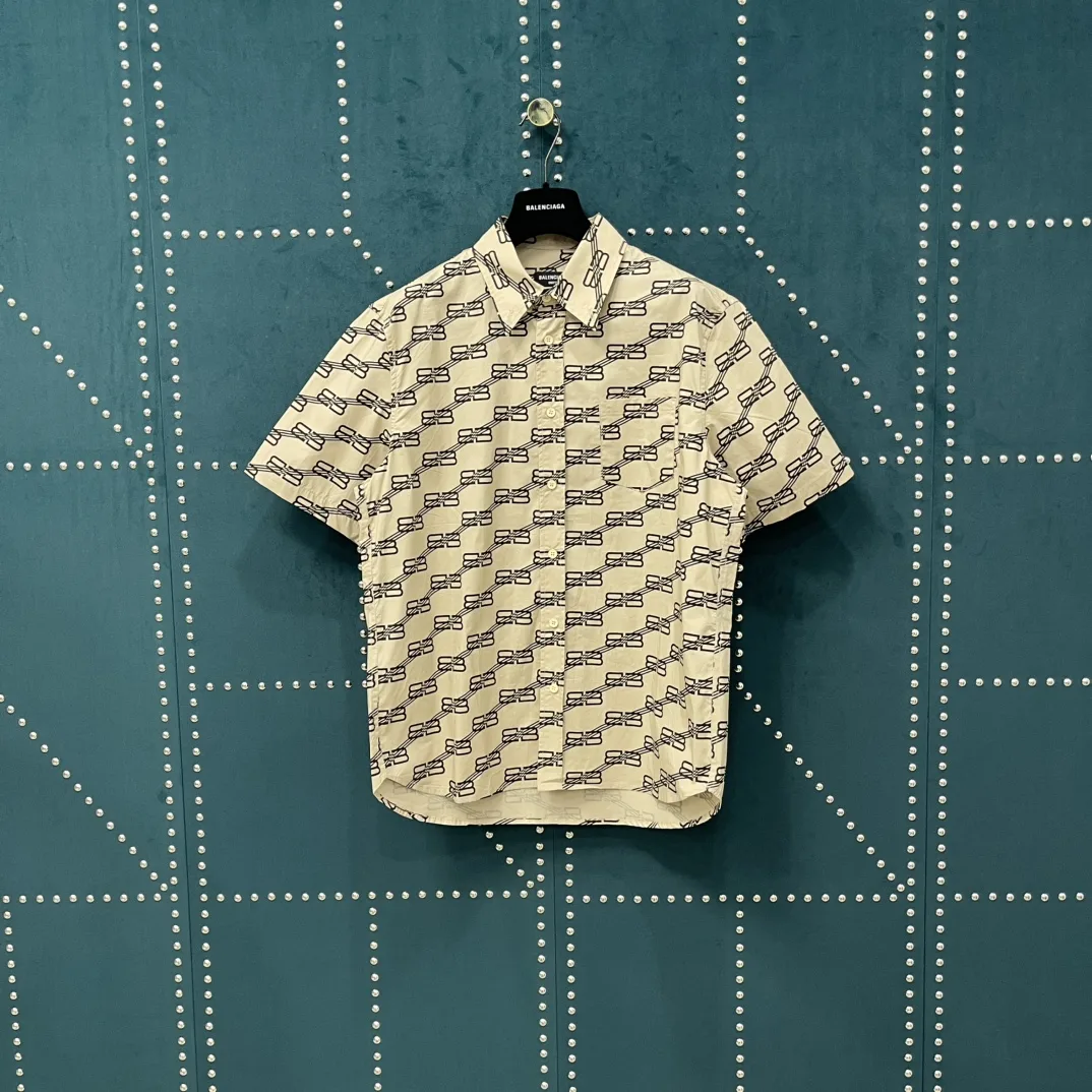 Balenciaga BLCG SS New Standard Kurzarmhemd mit Doppel-B-Monogramm