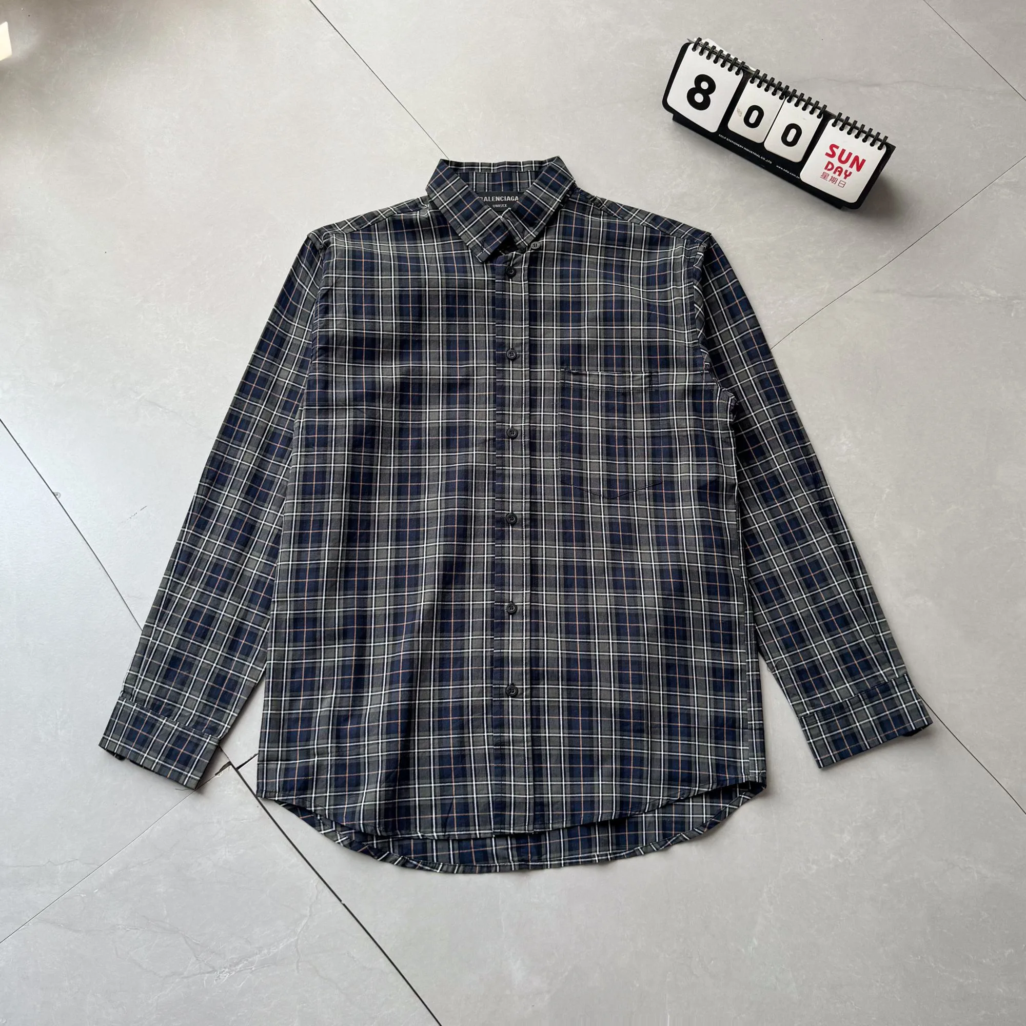 – Balenciagas neuestes Frühjahr/Sommer-Shirt BLCG: Locker geschnittenes, lässiges Karomuster mit Schriftzug-Print, ein vielseitiges und bequemes Langarmshirt aus Baumwolle mit schweißableitendem und atmungsaktivem Print. Unisex.