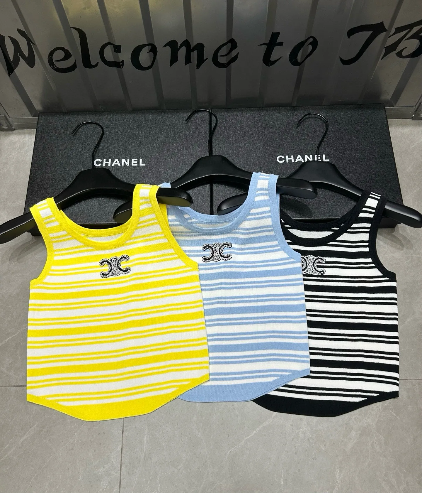 Meistverkaufte Celine Weste Gelb Strick Gestreift Luxus
