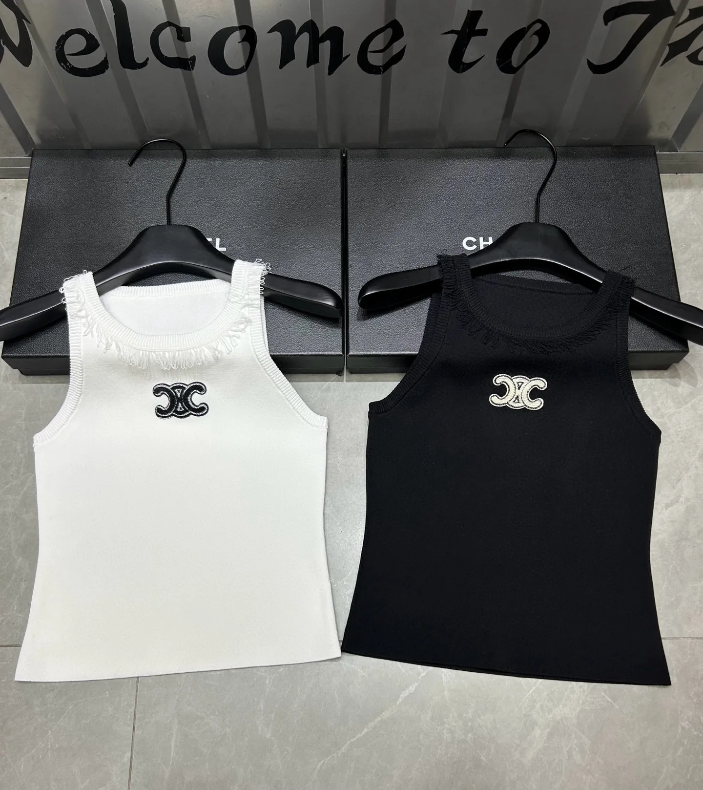 Meistverkaufte Celine Weste Weiß Strick Bestickt Luxus
