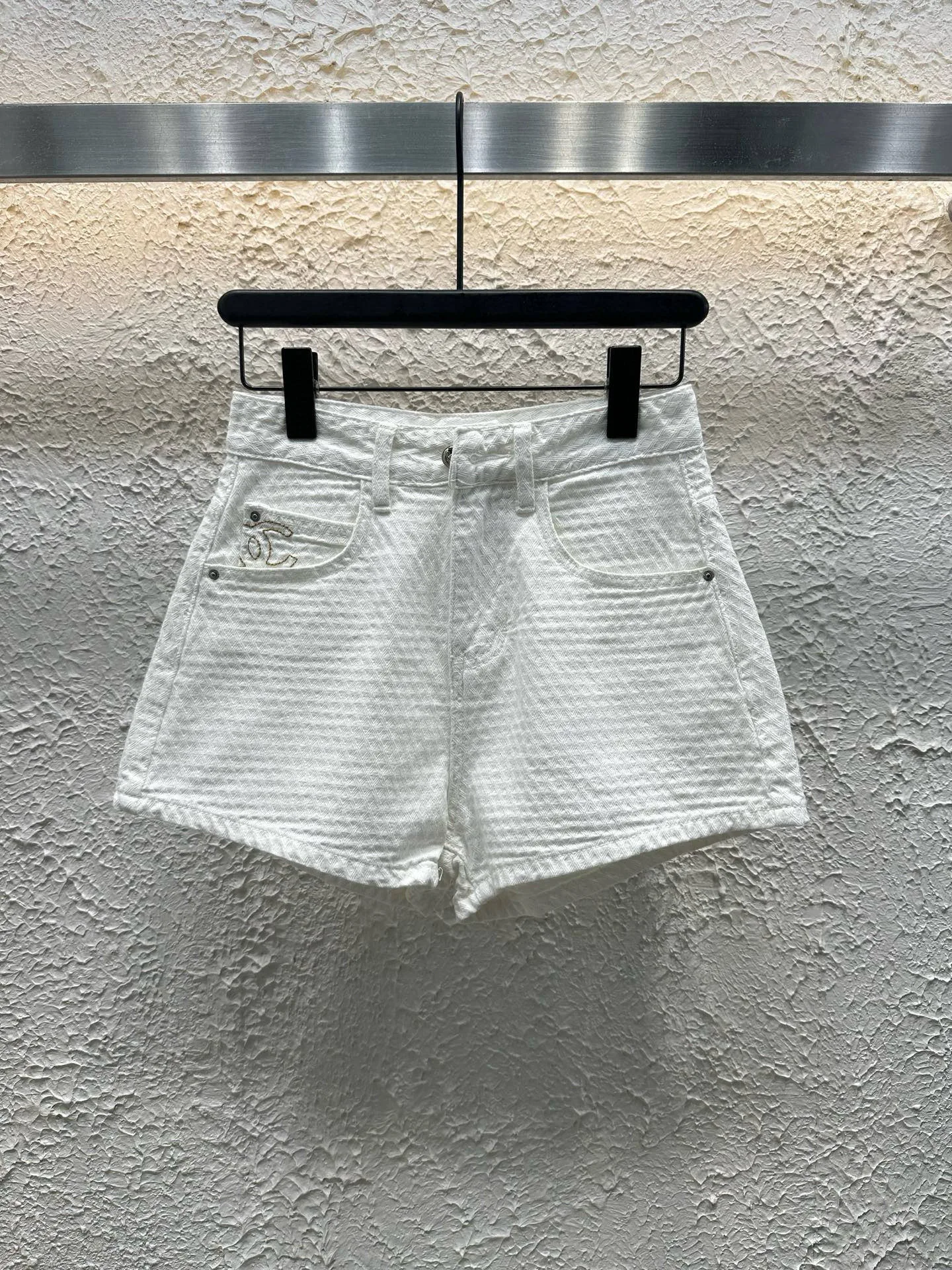 Meistverkaufte Chanel-Shorts im bestickten Stil aus weißem Denim