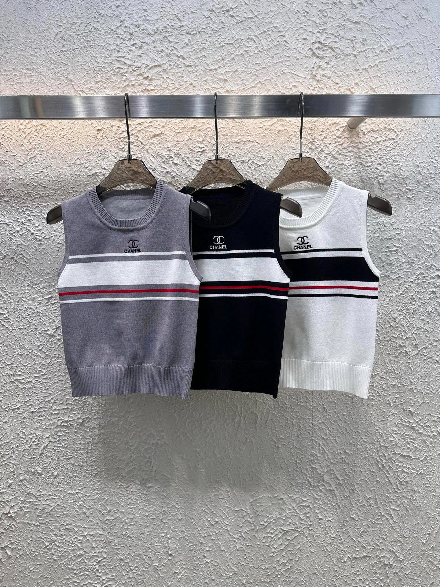 Meistverkaufte Chanel Weste Grau Strick Bestickt Stil