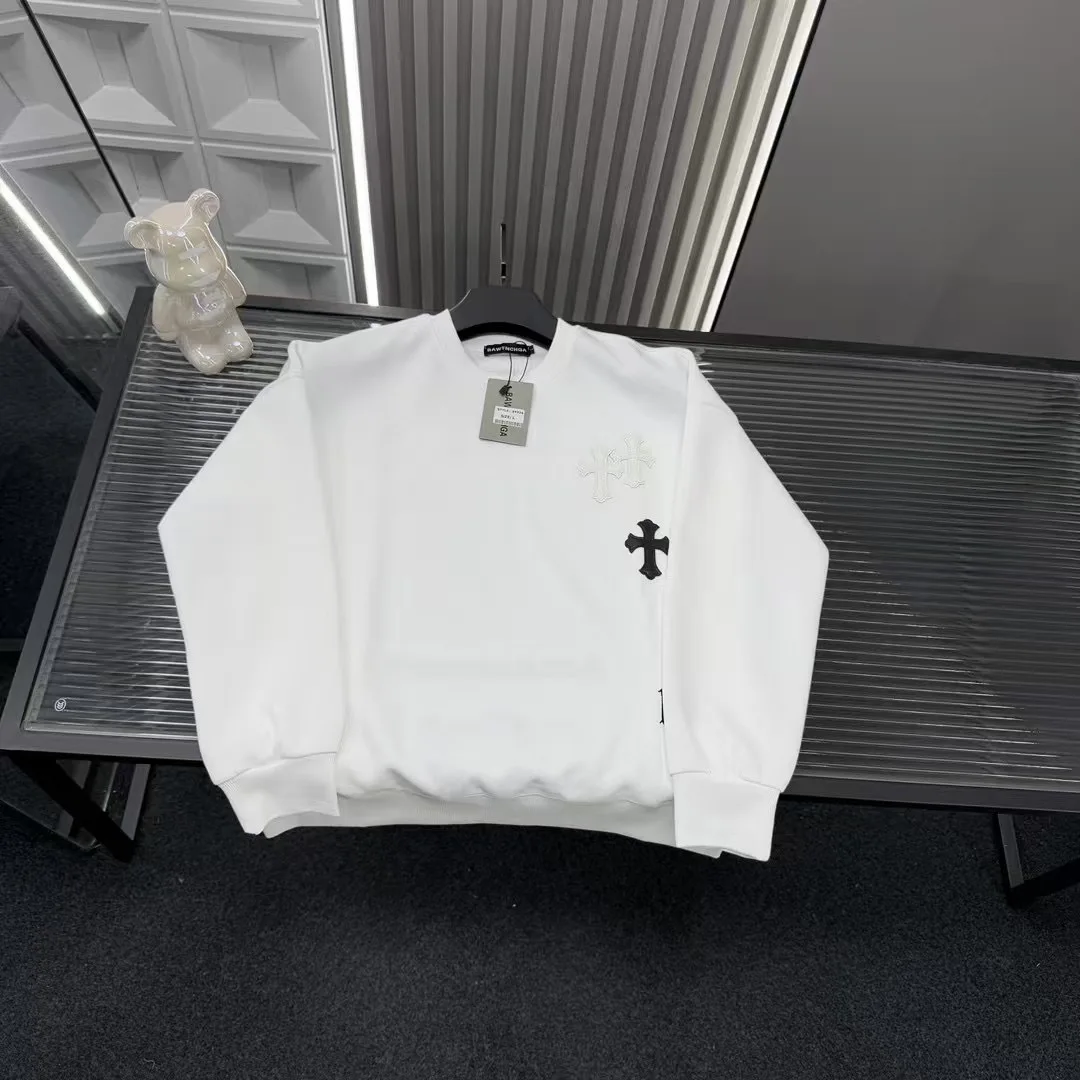 Dieses langärmelige Rundhals-Sweatshirt mit Chrome Hearts-Kreuzstickerei ist ideal für den Frühherbst und zeigt alle wichtigen Logos, passend zur offiziellen Website. Zoomen Sie hinein, um Details zu sehen. Fotos mit der Originalkamera aufgenommen.