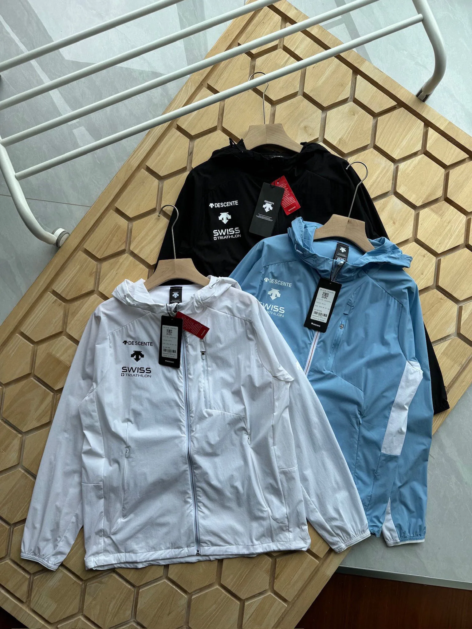 Neu für Frühling und Sommer: Exklusiv in Korea erhältlich – ein stylischer Sonnenschutzartikel, der in China nicht erhältlich ist. Diese DESCENTE Hautschutzjacke in Schweizer Farben ist eine gewebte Sportjacke mit Kapuze und Patchwork-Muster für Damen und Herren! Das edle, dreidimensionale, laminierte D-Logo sorgt für einen echten dreidimensionalen Effekt! Überzeugen Sie sich selbst von den feinen Nähten und der Premium-Qualität. Das hochwertige Stretchmaterial und der dynamische Schnitt passen sich den dynamischen Konturen von Schultern und Armen an und sorgen für optimale Bewegungsfreiheit beim Sport. Das elastische Gewebe ist bequem und atmungsaktiv.