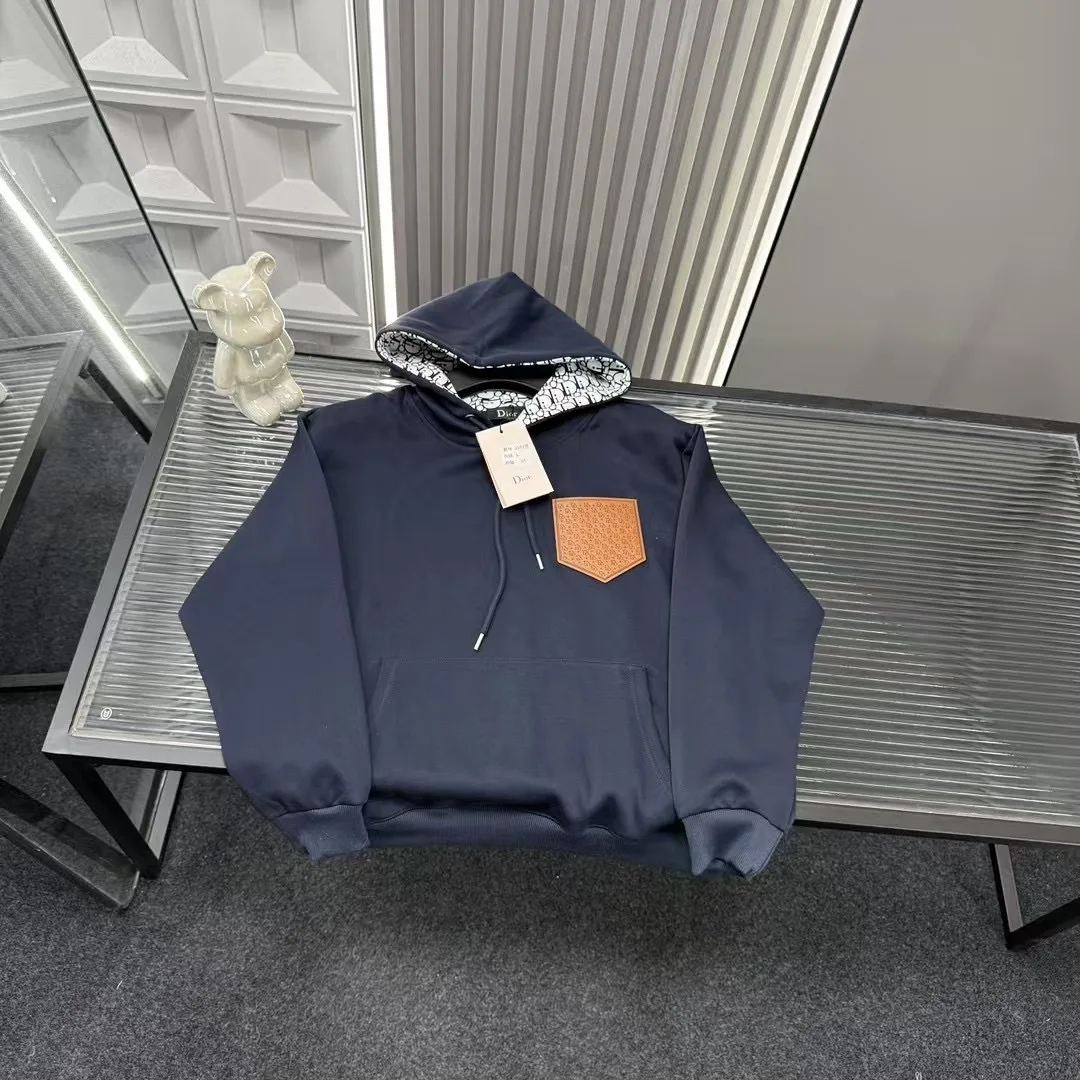 Empfohlene neue Sweatshirts: Dior-Kapuzensweatshirt mit bestickten Ledertaschen und ein Full-Print-Hoodie. Alle drei Labels sind identisch mit denen auf der offiziellen Website. Zoomen Sie hinein, um Details zu sehen. Foto mit der Originalkamera aufgenommen.