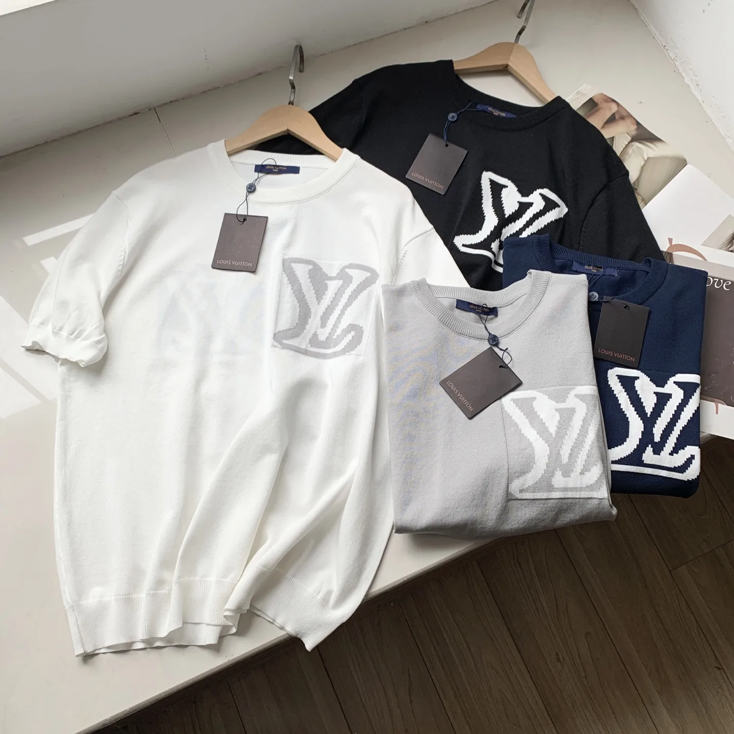 Ebenfalls erhältlich: Louis Vuittons neues Sommer-T-Shirt aus Jacquard-Strick mit Logo, Rundhalsausschnitt und Eisseide.