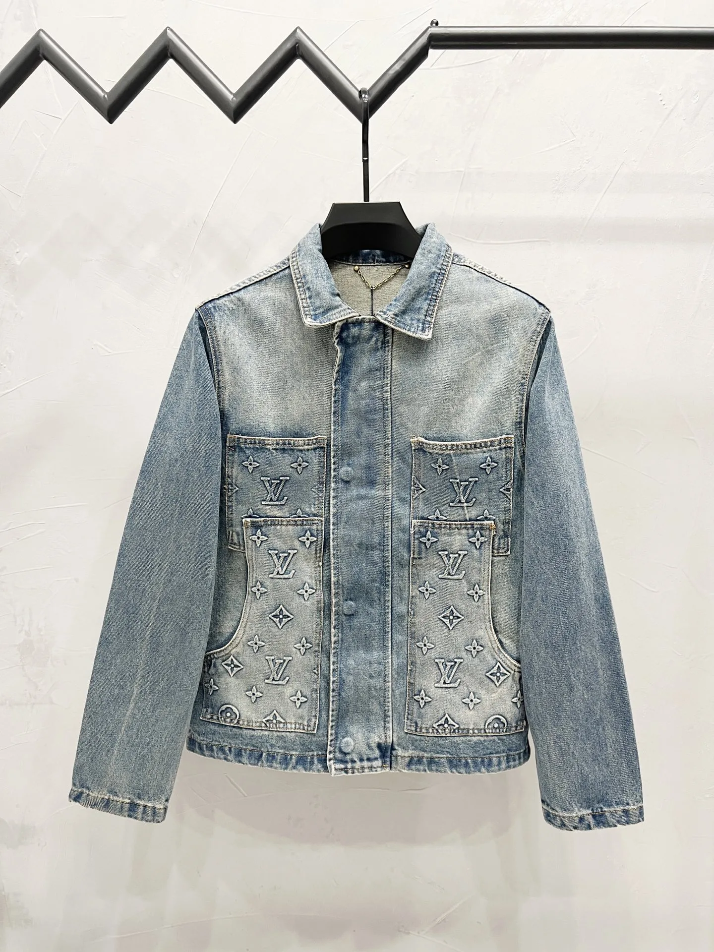 LOUIS VUITTON Langarm-Jeansjacke mit Logoprägung für Damen und Herren, Dunkelblau