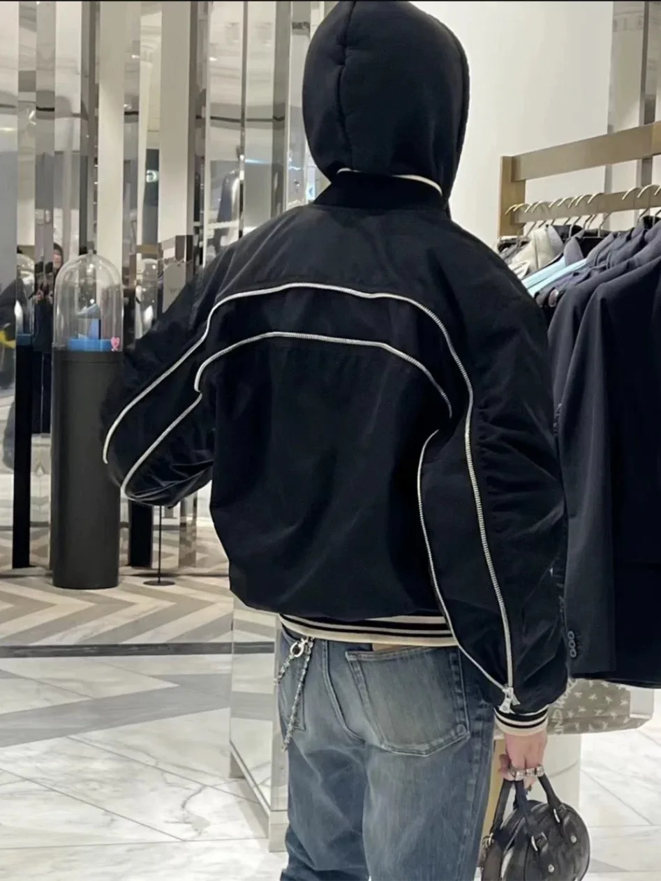 Dries Van Noten DVN Nylon-Kurzmantel mit Reißverschluss hinten, Steppjacke, Retro, schlicht, cleanfit, Unisex