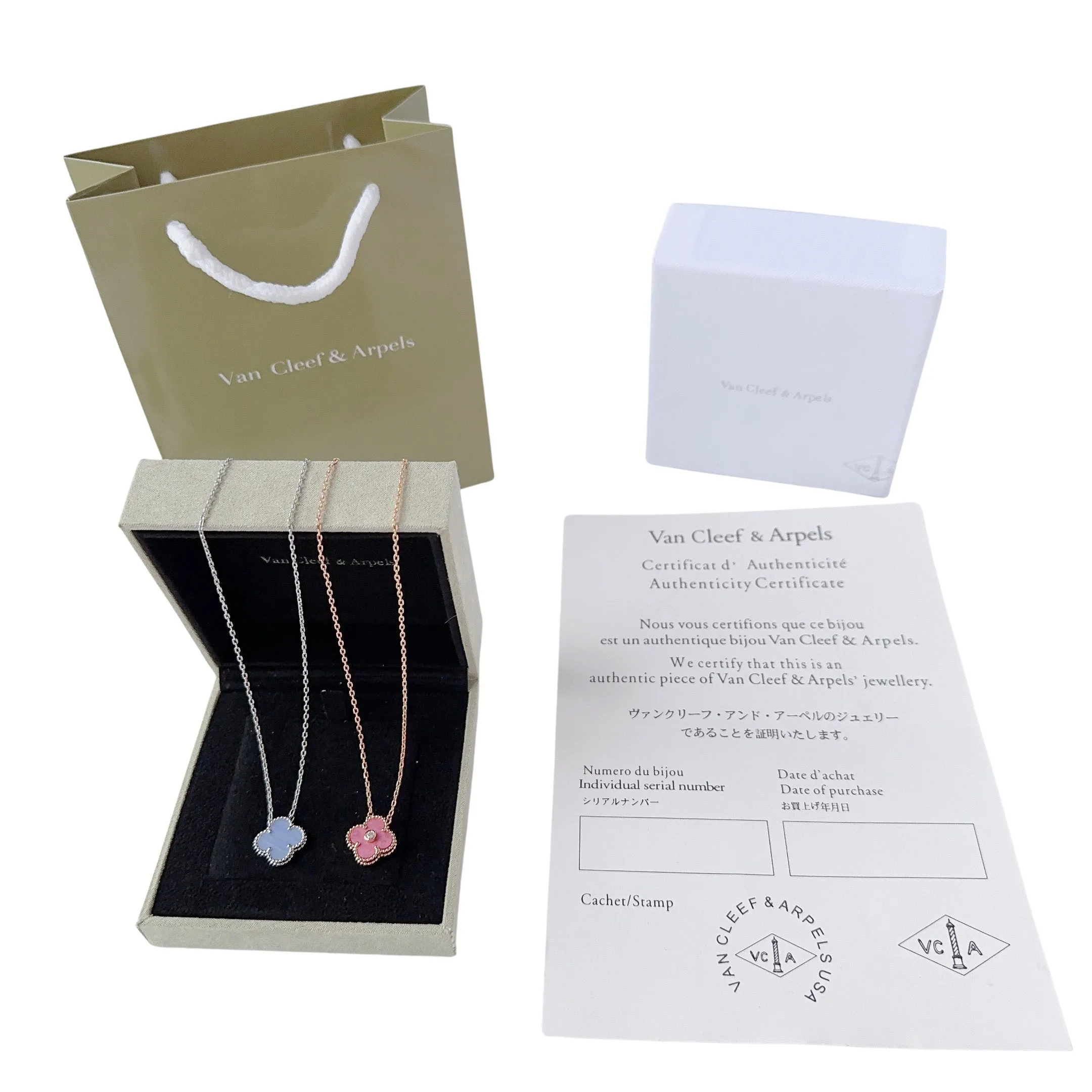Van Cleef & Arpels Alhambra Four-Leaf Lucky Collection – Halskette mit vierblättrigem Kleeblatt aus Rhodonit und Diamanten – Solitär-Goldschmuck für Damen, VCA Van Cleef & Arpels – ein absolutes Must-have für alle, die shoppen möchten! Dieser Vintage-Alhambra-Anhänger (Code: VCARD) kostet auf der offiziellen Website , RMB. Die Vintage-Alhambra-Kollektion von Van Cleef & Arpels ist eine originalgetreue Nachbildung des ersten Alhambra-Schmuckstücks aus dem Jahr 2006. Ihr einzigartiges, zeitloses und elegantes Design besticht sofort. Die Glückssymbole sind vom vierblättrigen Glücksmotiv inspiriert und mit runden Gelbgoldperlen akzentuiert.