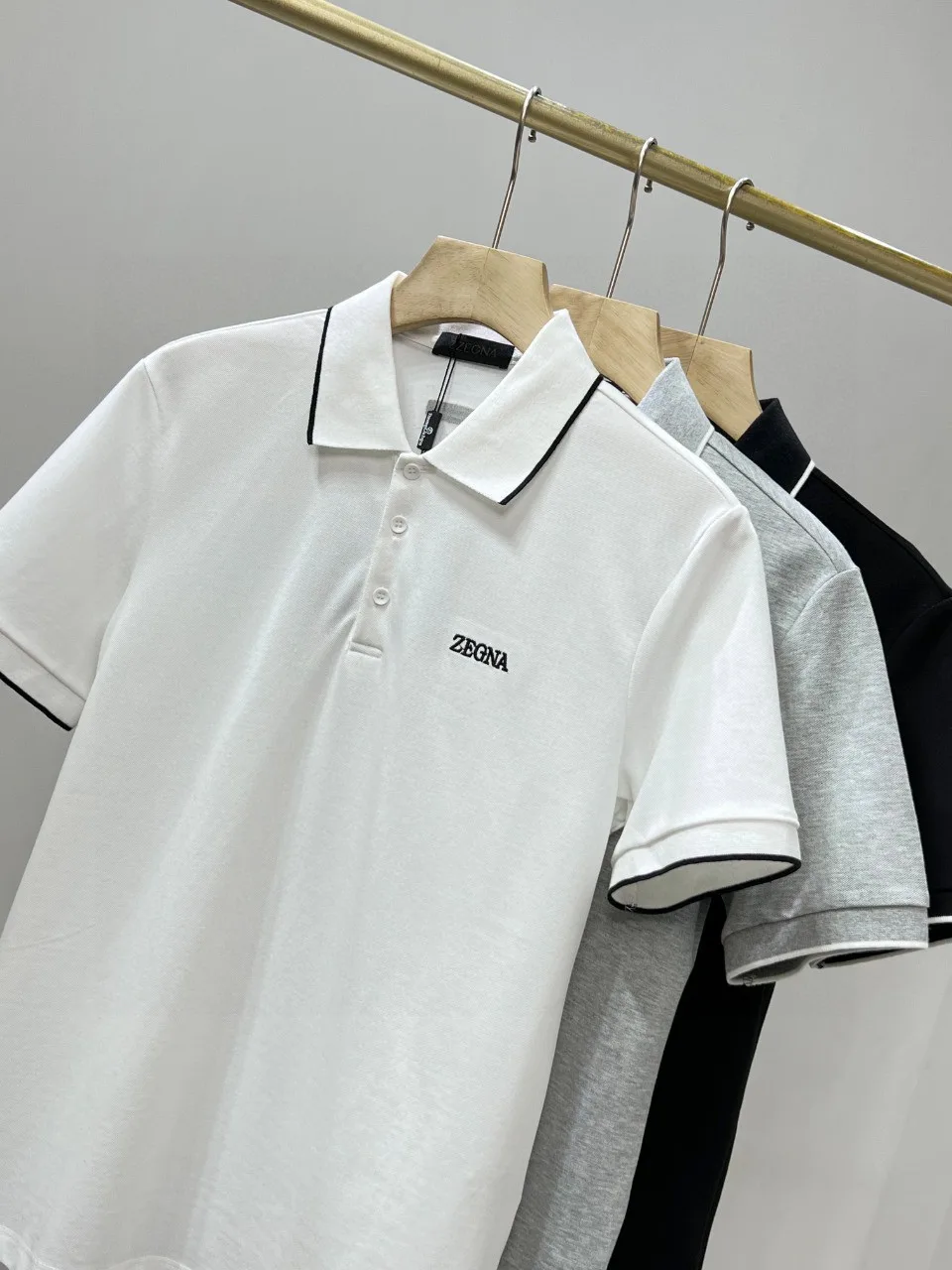 Egna/Zegna Herren-P-Shirt mit Revers und kurzen Ärmeln, lässig und lässig