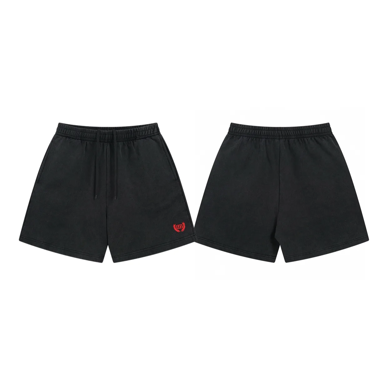 BALENCIAGA SS Red Wheat Ear Logo gestickt, gewaschen, abgenutzt und zerrissen, Paar-Freizeitshorts – Premium Originalversion