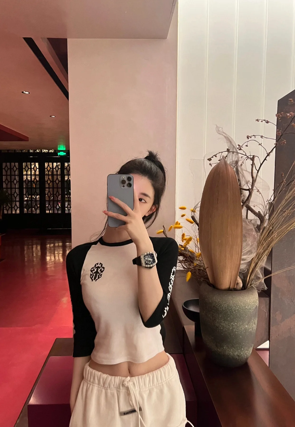 Chrome Hearts CH Vine Sword Sanskrit-Print, kontrastfarbenes Raglan-T-Shirt mit Rundhalsausschnitt und kurzen Ärmeln