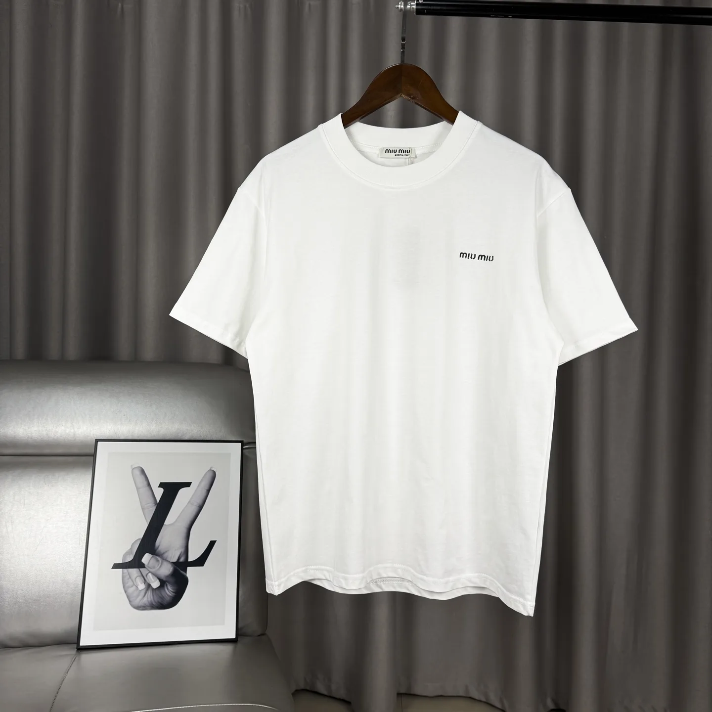 Miu Miu Klassisches, einfarbiges, kurzärmliges Unisex-T-Shirt mit kleinem Logo und Rundhalsausschnitt