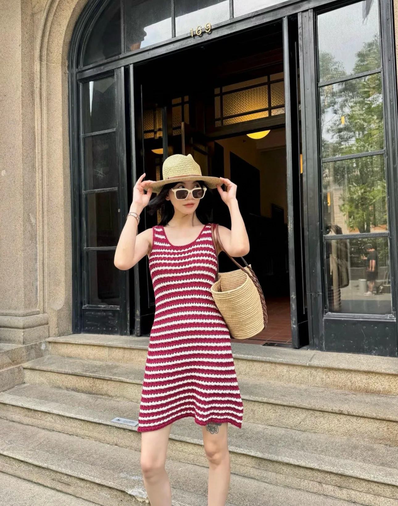 Prada Strickkleid mit Dreieckslogo, Cut-out und Streifen