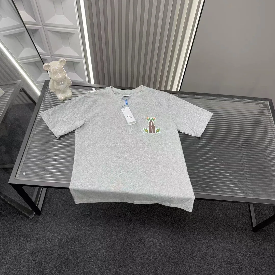 Empfohlene neue Kurzarmshirts: das adidas Trefoil Digital Floral Kurzarmshirt. Alle drei Logos sind identisch mit denen auf der offiziellen Website. Zoomen Sie hinein, um Details zu sehen. Foto mit der Originalkamera aufgenommen.