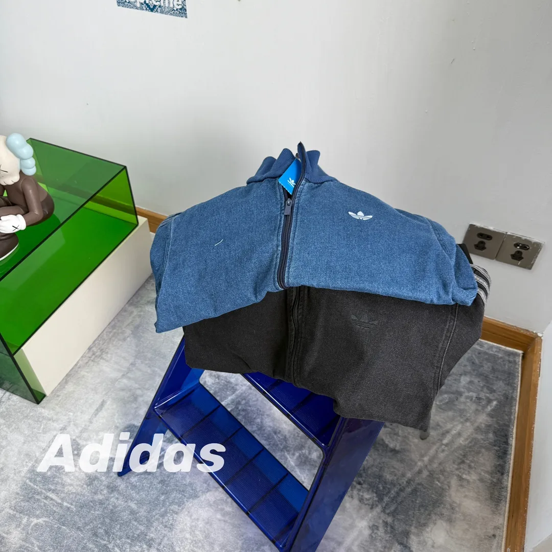 adidas Originals Firebird DENIM FB TT Trefoil Zipper Stand Collar Loose Casual Vintage Washed Jeansjacke