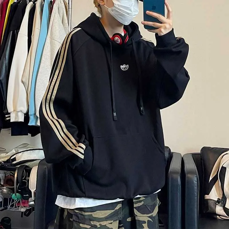 Adidas Trefoil: Neues Baumwoll-Kapuzensweatshirt für Paare mit farblich abgestimmten Ärmeln und Drei-Streifen-Muster für Frühjahr/Herbst!