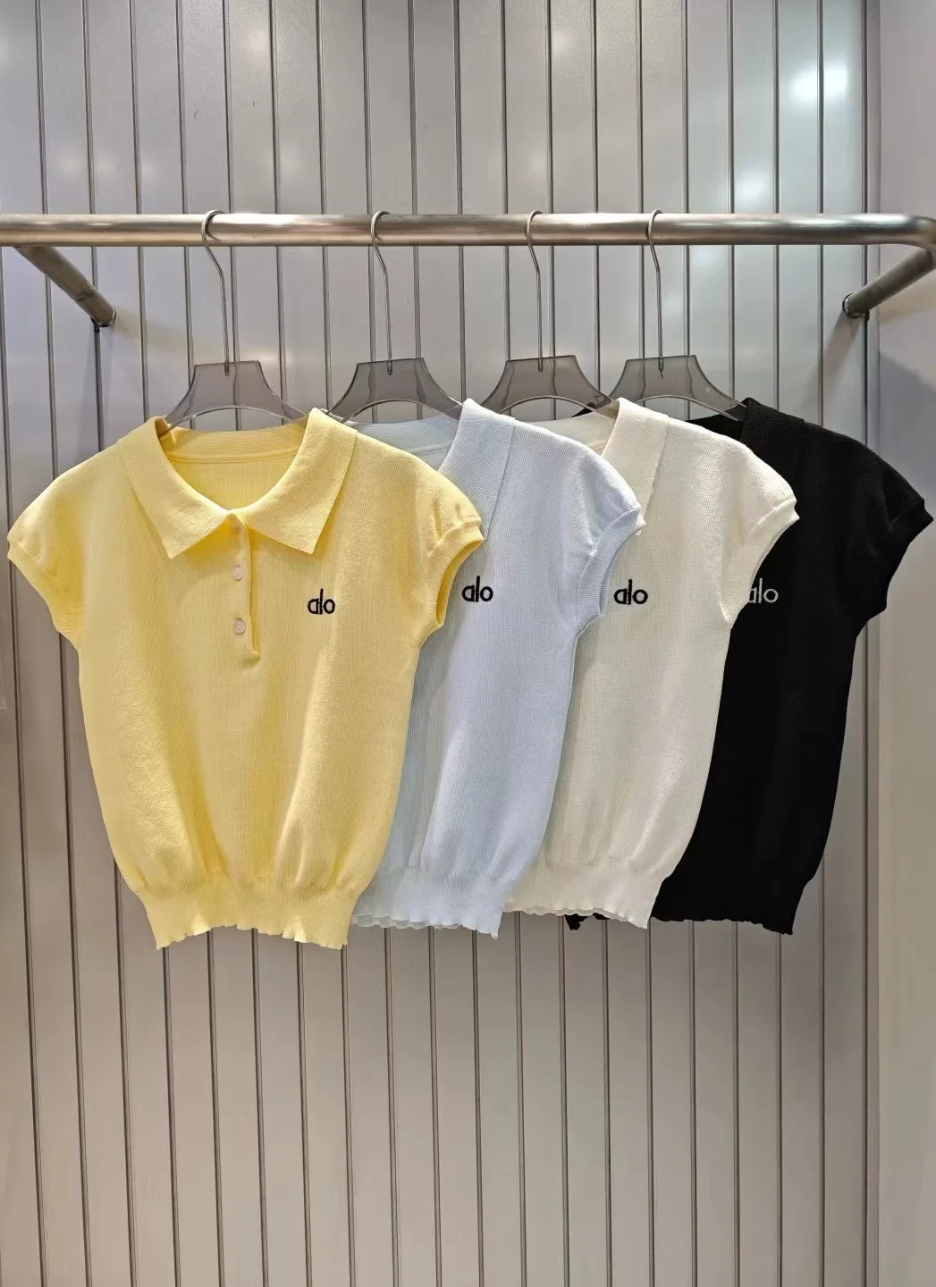 Premium Alo Kurzarm Gelb Strick Bestickte Kollektion