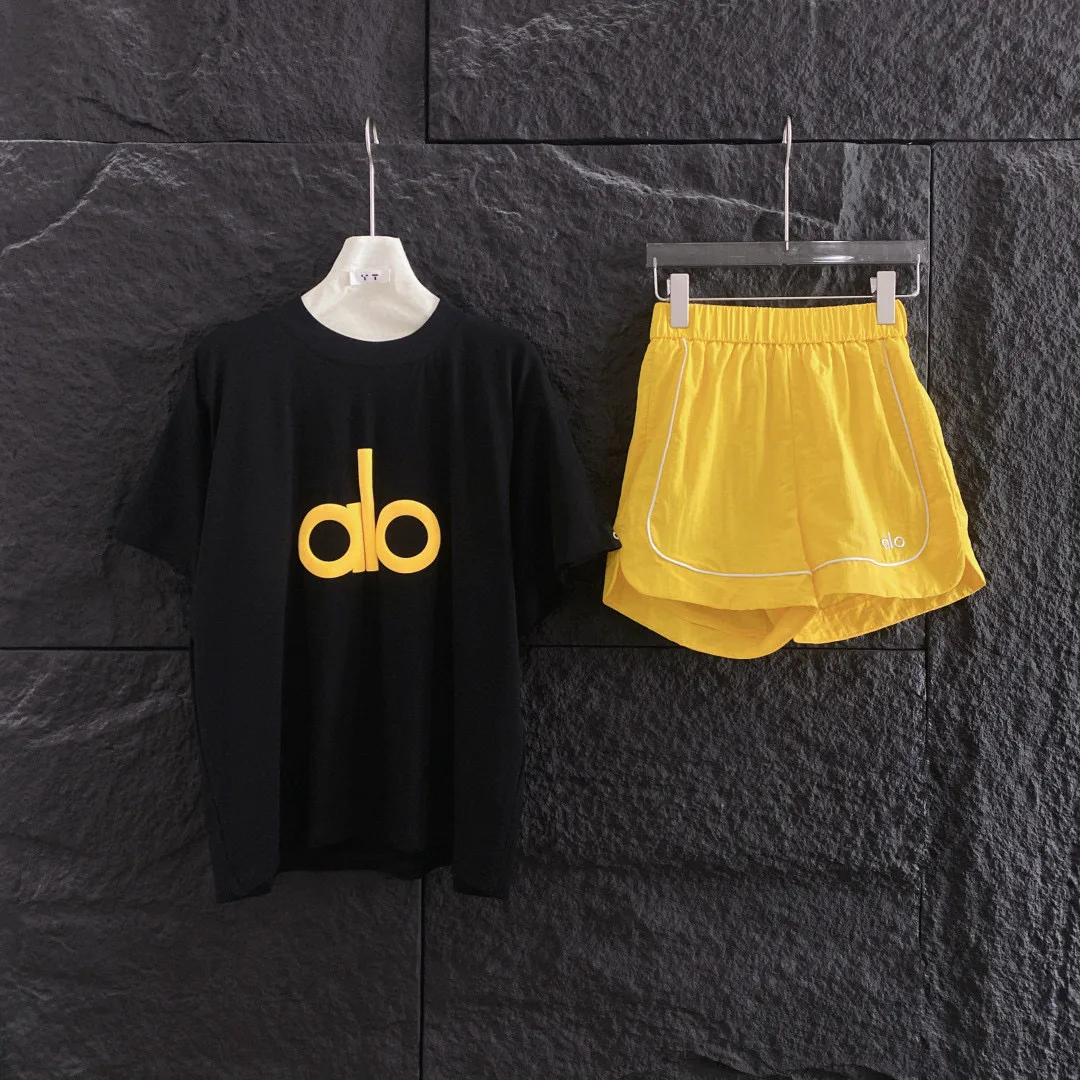 Alo T-Shirt mit Rundhalsausschnitt, elastischem Bund und Shorts im Set mit individuellem Logo-Schaumstoffdruck