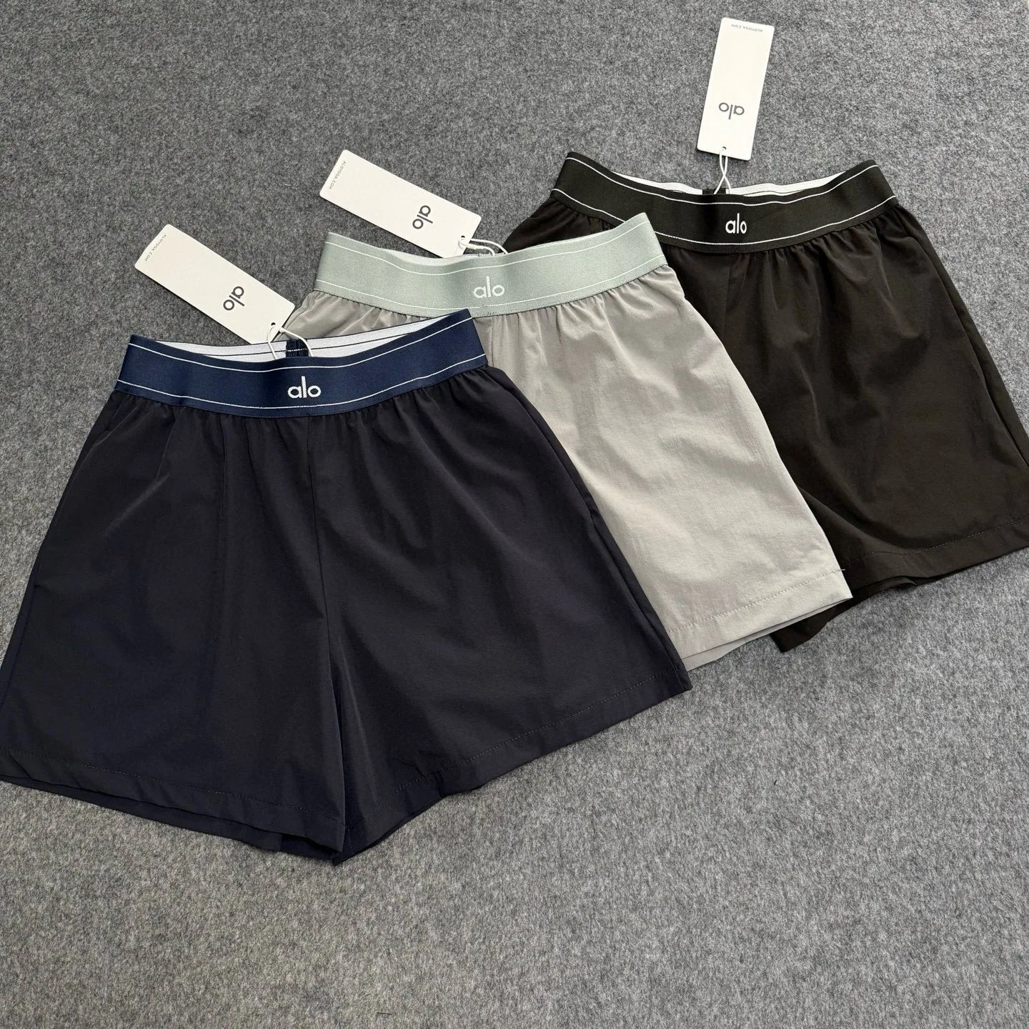 Alo – Schnelltrocknende Shorts mit individuellem Schriftzug und elastischem Bund