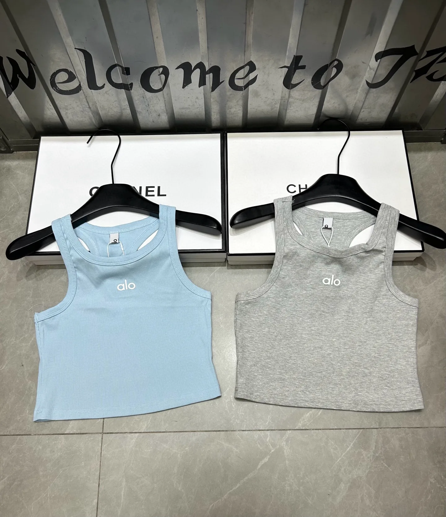 Alo Racerback-Tanktop mit Buchstaben-Print