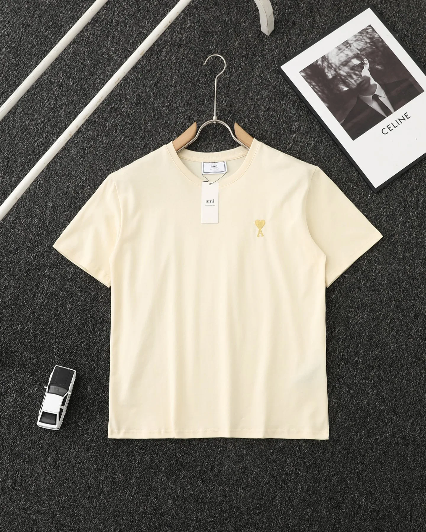 AMI PS SS – Exklusives, klassisches, kurzärmeliges T-Shirt mit Rundhalsausschnitt und Herzstickerei auf der offiziellen Website