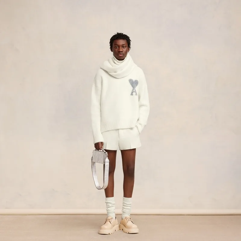 AMI PS Weihnachts-Rollkragenpullover mit silbernem Herz in limitierter Auflage, Unisex