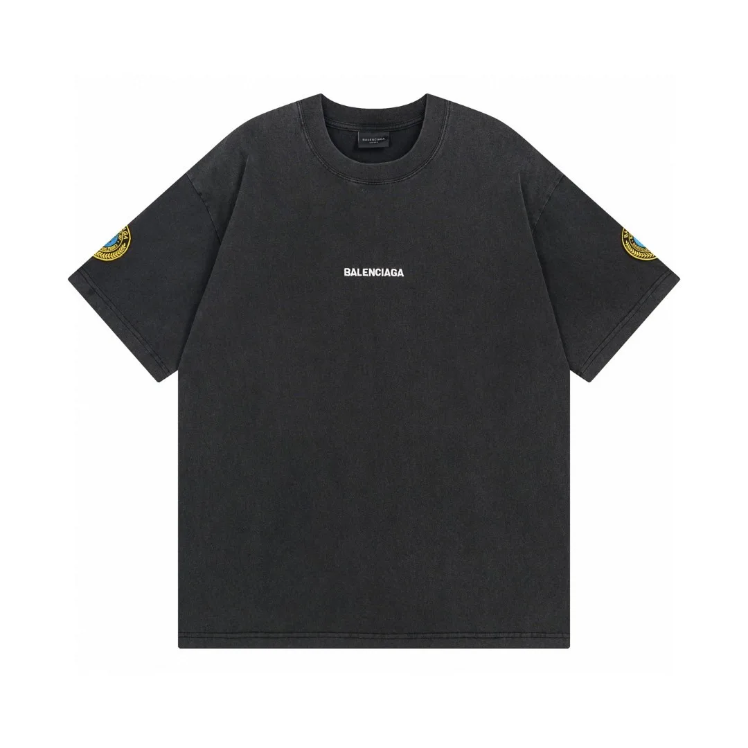 BALENCIAGA/Balenciaga SS: Neues Kurzarm-T-Shirt mit aufgesticktem Paris-Logo auf der Brust und feinen Patches an den linken und rechten Manschetten.