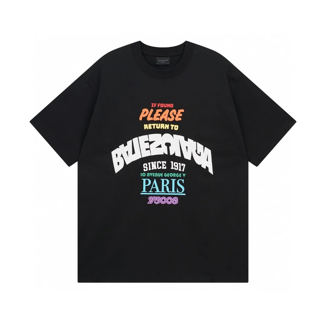 BALENCIAGA/Balenciaga SS: Buntes, bedrucktes und besticktes Kurzarm-T-Shirt mit importiertem Gummipuder-Print.