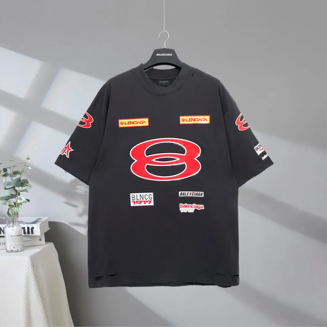 (Spitzenmodell, hochwertigste Ausführung) Die Größen fallen groß aus. Balenciaga-T-Shirt mit klassischem Brustdruck und Rundhalsausschnitt und mehreren Logos.